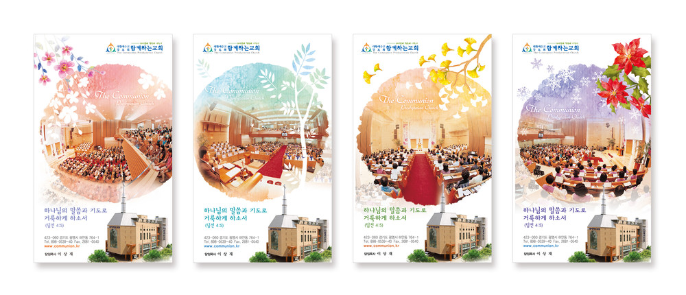 보통 교정을 컴퓨터 모니터나, 칼라 프린터로 출력해서 보시는 경우 모니터(빛의 색 RGB)와 인쇄물(잉크색 CMYK)에는 약간의 차이가 있습니다. 각 교회에서 사용되는 칼라 프린트도 옵셋 인쇄와는 인쇄 방식이 조금 달라 색상의 차이가 있습니다. 특히 종이의 재질(모조지, 아트지, 고급용지)에 의한 색의 차이도 발생할 수 있습니다.