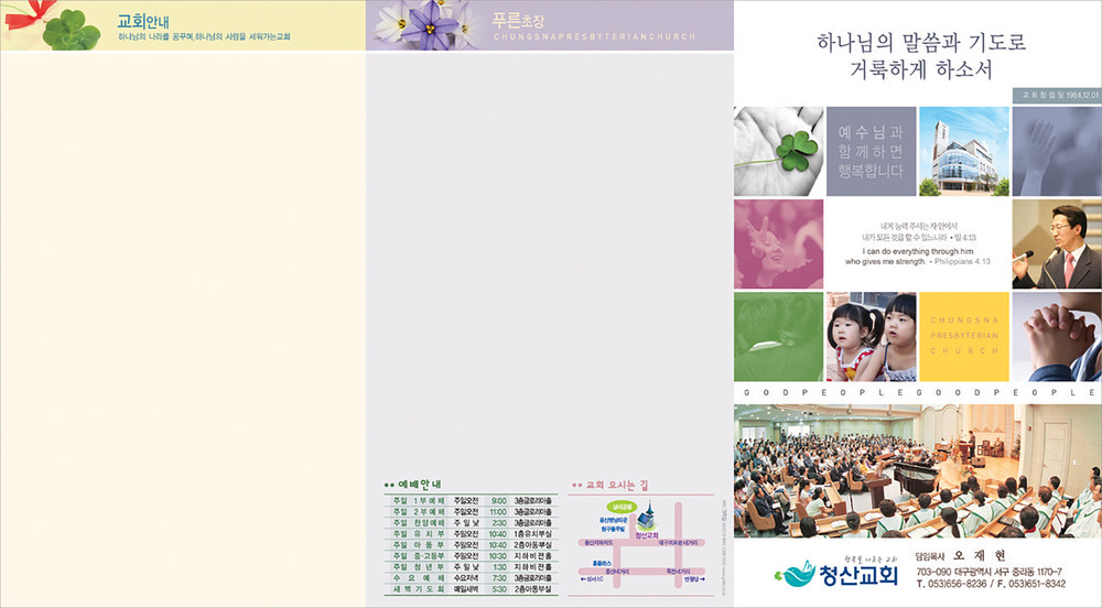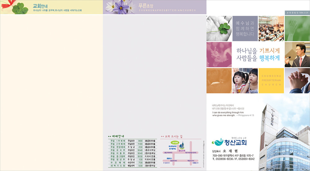 모든 디자인이 완료된 후 현재 교회가 사용중인 한글파일을 보내주시면, 새로운 주보에 맞추어 인쇄가 가능하도록 한글파일을 제작해드리고 있습니다. (한글작업 요청시 약 1-3일 정도의 시간이 소요되오니 참고해 주시기 바랍니다.)