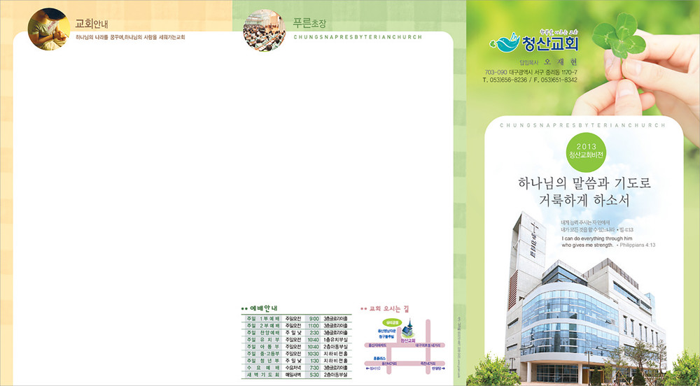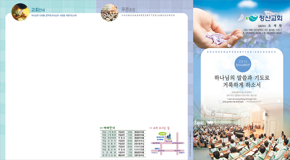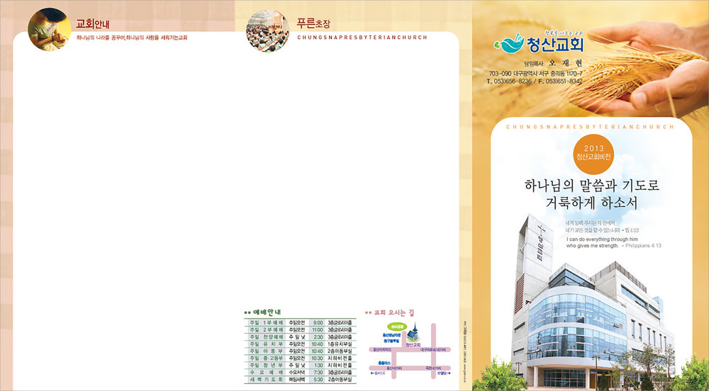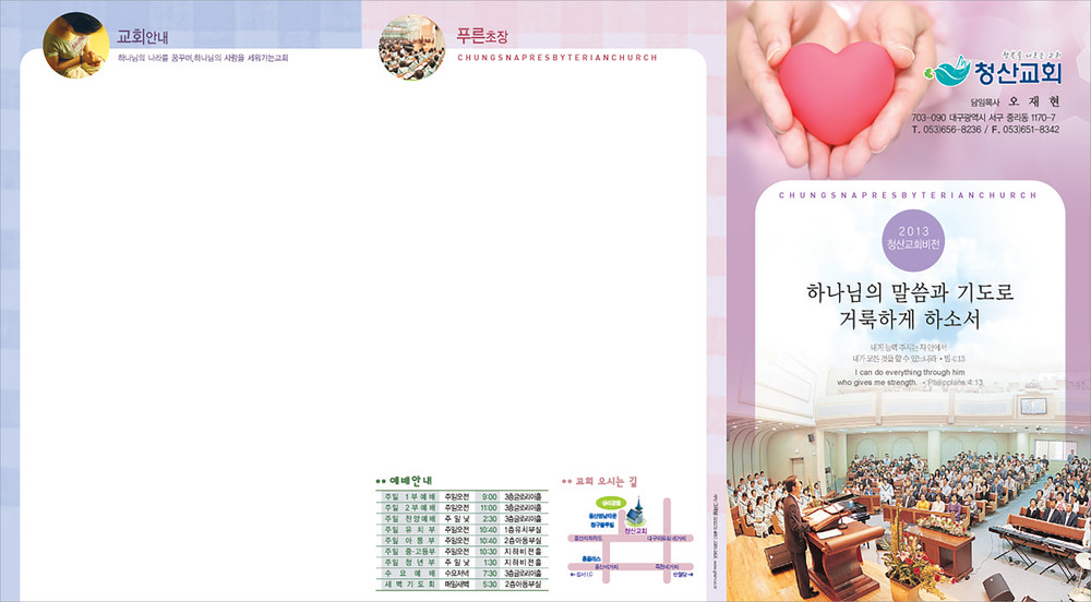 모든 디자인이 완료된 후 현재 교회가 사용중인 한글파일을 보내주시면, 새로운 주보에 맞추어 인쇄가 가능하도록 한글파일을 제작해드리고 있습니다. (한글작업 요청시 약 1-3일 정도의 시간이 소요되오니 참고해 주시기 바랍니다.)