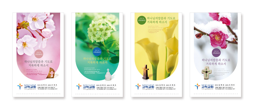 보통 교정을 컴퓨터 모니터나, 칼라 프린터로 출력해서 보시는 경우 모니터(빛의 색 RGB)와 인쇄물(잉크색 CMYK)에는 약간의 차이가 있습니다. 각 교회에서 사용되는 칼라 프린트도 옵셋 인쇄와는 인쇄 방식이 조금 달라 색상의 차이가 있습니다. 특히 종이의 재질(모조지, 아트지, 고급용지)에 의한 색의 차이도 발생할 수 있습니다.