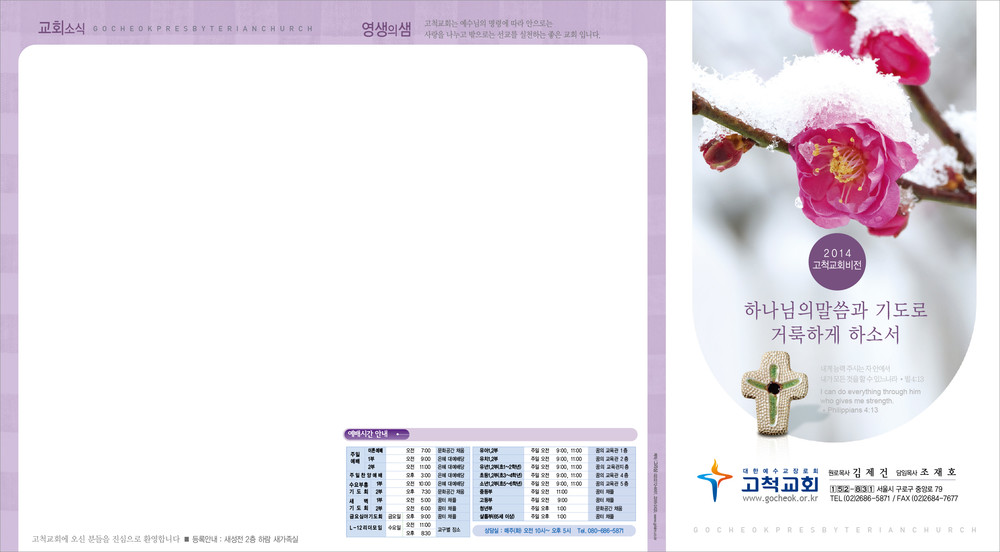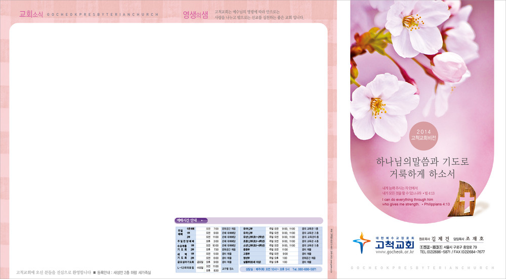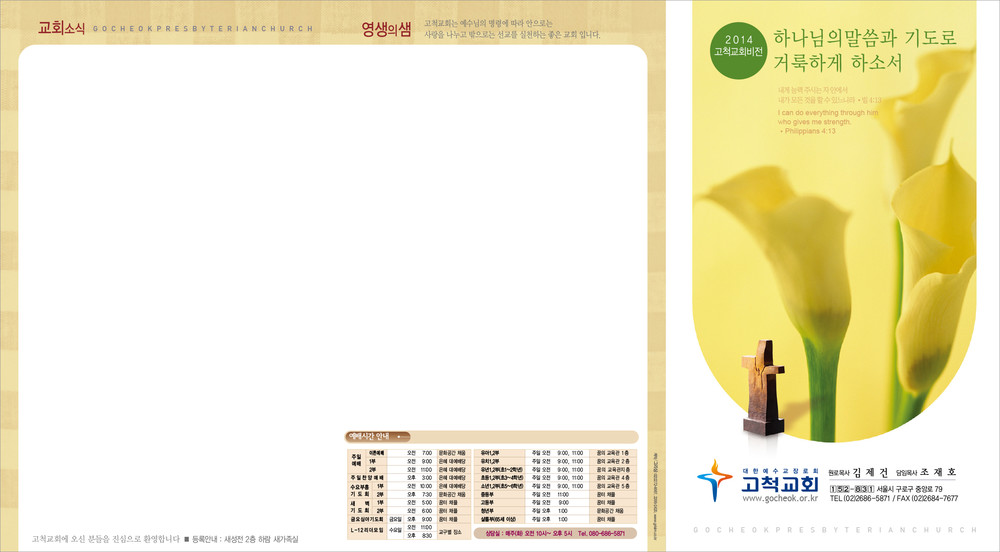 모든 디자인이 완료된 후 현재 교회가 사용중인 한글파일을 보내주시면, 새로운 주보에 맞추어 인쇄가 가능하도록 한글파일을 제작해드리고 있습니다. (한글작업 요청시 약 1-3일 정도의 시간이 소요되오니 참고해 주시기 바랍니다.)