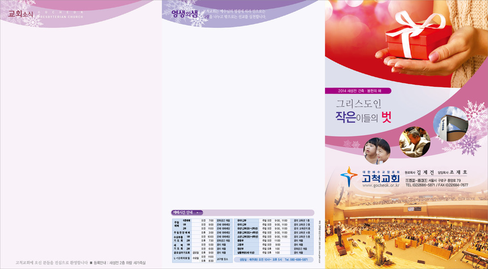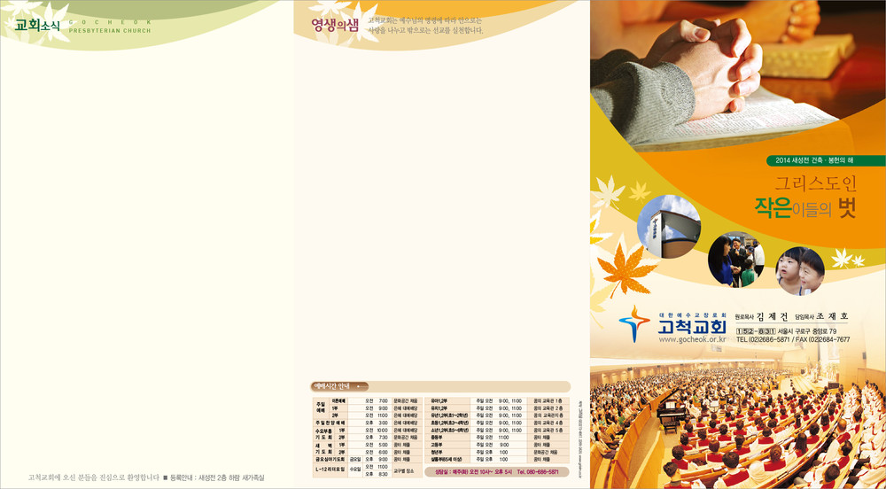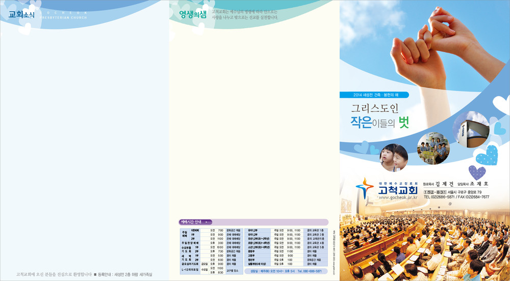 모든 디자인이 완료된 후 현재 교회가 사용중인 한글파일을 보내주시면, 새로운 주보에 맞추어 인쇄가 가능하도록 한글파일을 제작해드리고 있습니다. (한글작업 요청시 약 1-3일 정도의 시간이 소요되오니 참고해 주시기 바랍니다.)