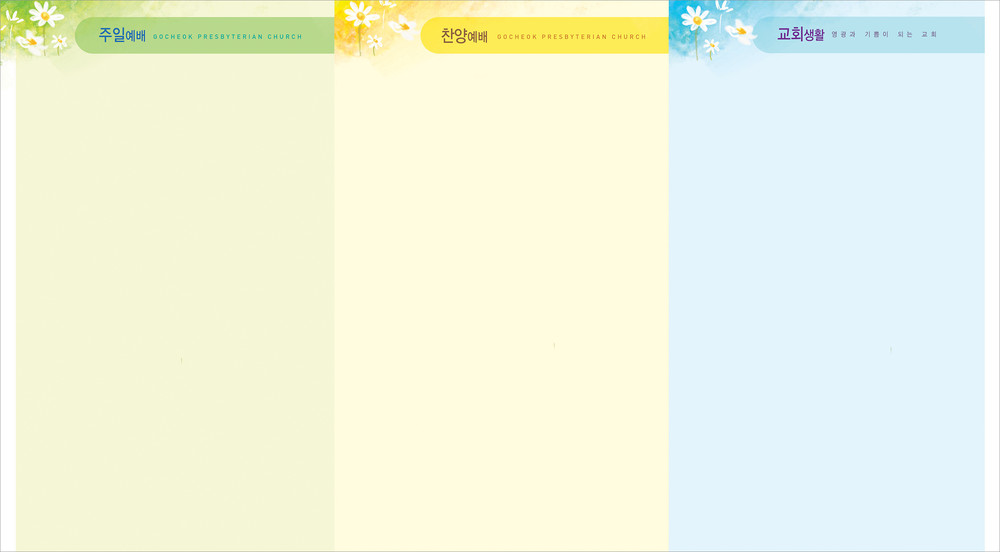 모든 디자인이 완료된 후 현재 교회가 사용중인 한글파일을 보내주시면, 새로운 주보에 맞추어 인쇄가 가능하도록 한글파일을 제작해드리고 있습니다. (한글작업 요청시 약 1-3일 정도의 시간이 소요되오니 참고해 주시기 바랍니다.)