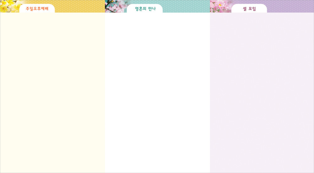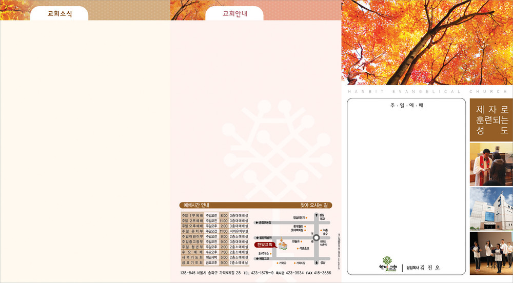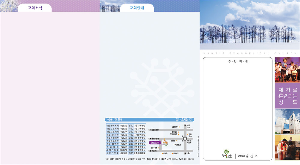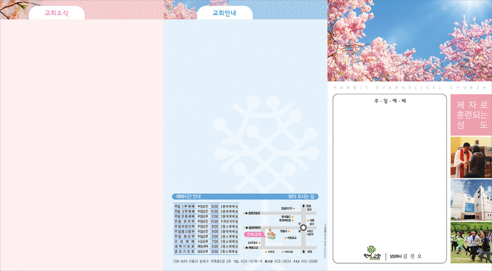 모든 디자인이 완료된 후 현재 교회가 사용중인 한글파일을 보내주시면, 새로운 주보에 맞추어 인쇄가 가능하도록 한글파일을 제작해드리고 있습니다. (한글작업 요청시 약 1-3일 정도의 시간이 소요되오니 참고해 주시기 바랍니다.)