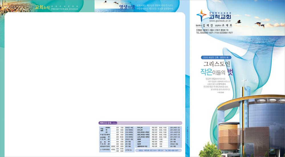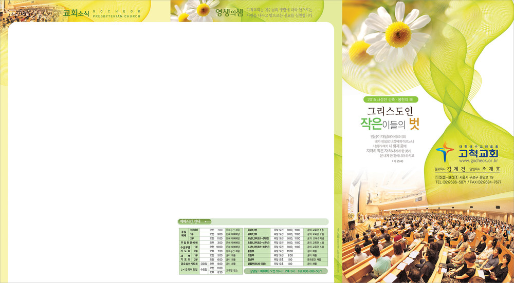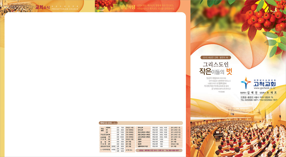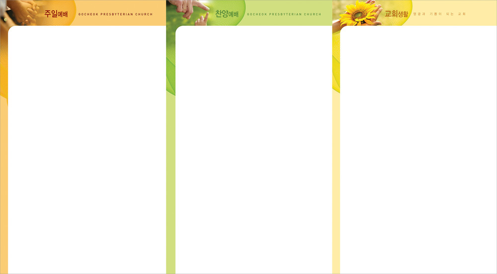 모든 디자인이 완료된 후 현재 교회가 사용중인 한글파일을 보내주시면, 새로운 주보에 맞추어 인쇄가 가능하도록 한글파일을 제작해드리고 있습니다. (한글작업 요청시 약 1-3일 정도의 시간이 소요되오니 참고해 주시기 바랍니다.)
