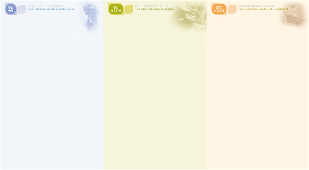 모든 디자인이 완료된 후 현재 교회가 사용중인 한글파일을 보내주시면, 새로운 주보에 맞추어 인쇄가 가능하도록 한글파일을 제작해드리고 있습니다. (한글작업 요청시 약 1-3일 정도의 시간이 소요되오니 참고해 주시기 바랍니다.)