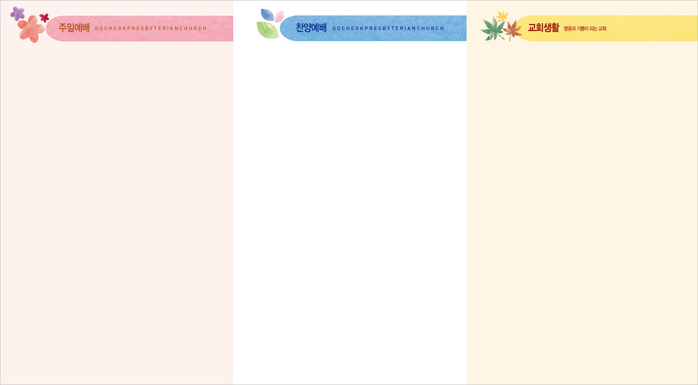 모든 디자인이 완료된 후 현재 교회가 사용중인 한글파일을 보내주시면, 새로운 주보에 맞추어 인쇄가 가능하도록 한글파일을 제작해드리고 있습니다. (한글작업 요청시 약 1-3일 정도의 시간이 소요되오니 참고해 주시기 바랍니다.)