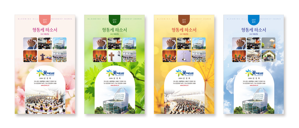 보통 교정을 컴퓨터 모니터나, 칼라 프린터로 출력해서 보시는 경우 모니터(빛의 색 RGB)와 인쇄물(잉크색 CMYK)에는 약간의 차이가 있습니다. 각 교회에서 사용되는 칼라 프린트도 옵셋 인쇄와는 인쇄 방식이 조금 달라 색상의 차이가 있습니다. 특히 종이의 재질(모조지, 아트지, 고급용지)에 의한 색의 차이도 발생할 수 있습니다.