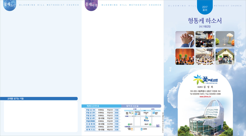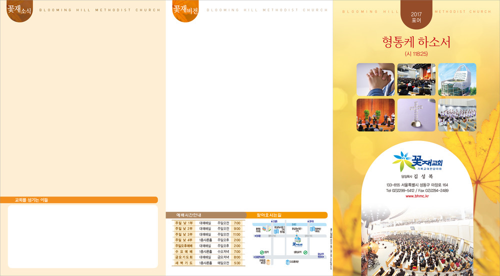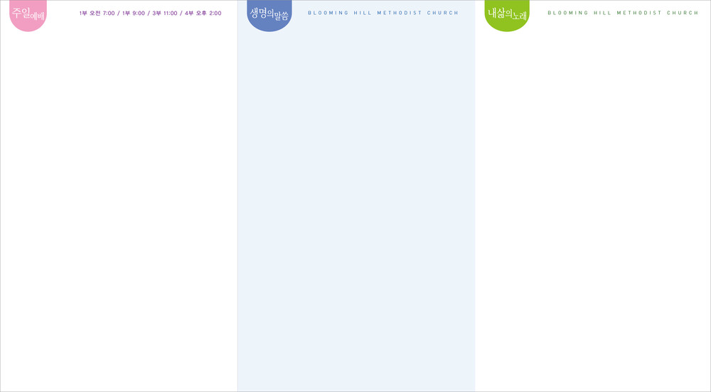 모든 디자인이 완료된 후 현재 교회가 사용중인 한글파일을 보내주시면, 새로운 주보에 맞추어 인쇄가 가능하도록 한글파일을 제작해드리고 있습니다. (한글작업 요청시 약 1-3일 정도의 시간이 소요되오니 참고해 주시기 바랍니다.)