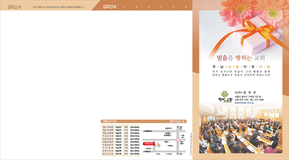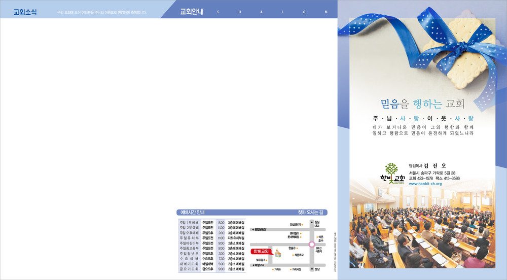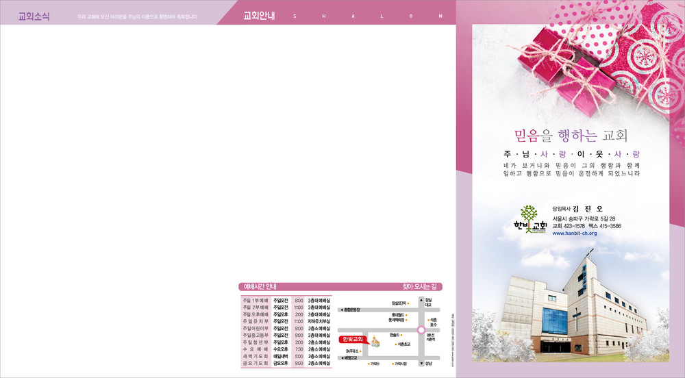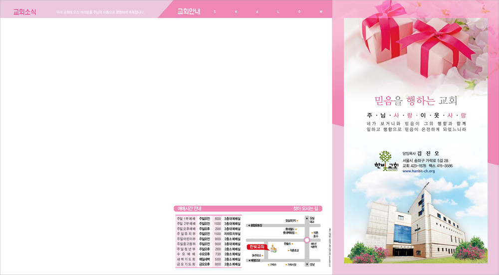 모든 디자인이 완료된 후 현재 교회가 사용중인 한글파일을 보내주시면, 새로운 주보에 맞추어 인쇄가 가능하도록 한글파일을 제작해드리고 있습니다. (한글작업 요청시 약 1-3일 정도의 시간이 소요되오니 참고해 주시기 바랍니다.)