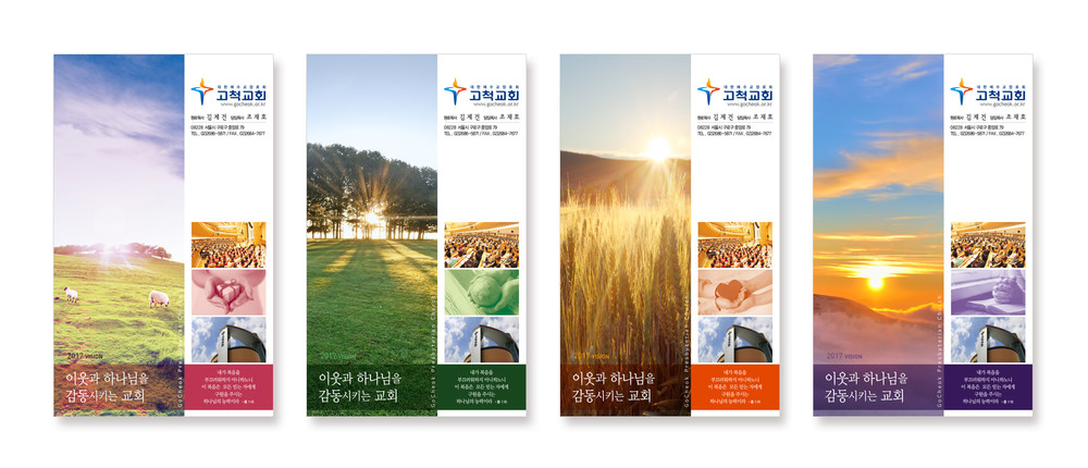 보통 교정을 컴퓨터 모니터나, 칼라 프린터로 출력해서 보시는 경우 모니터(빛의 색 RGB)와 인쇄물(잉크색 CMYK)에는 약간의 차이가 있습니다. 각 교회에서 사용되는 칼라 프린트도 옵셋 인쇄와는 인쇄 방식이 조금 달라 색상의 차이가 있습니다. 특히 종이의 재질(모조지, 아트지, 고급용지)에 의한 색의 차이도 발생할 수 있습니다.