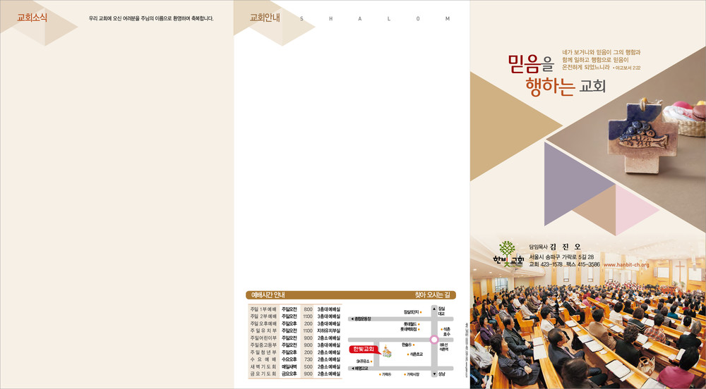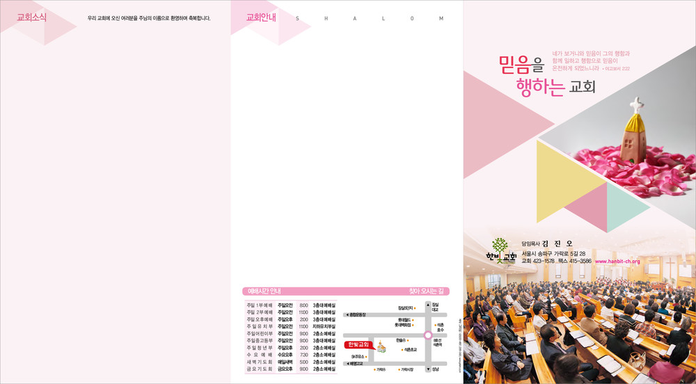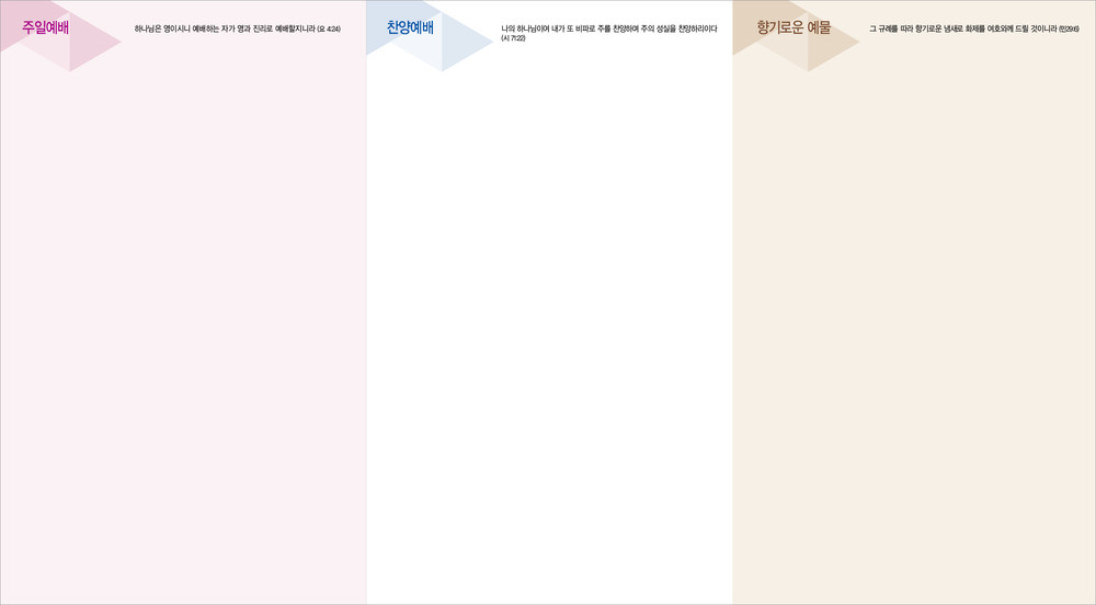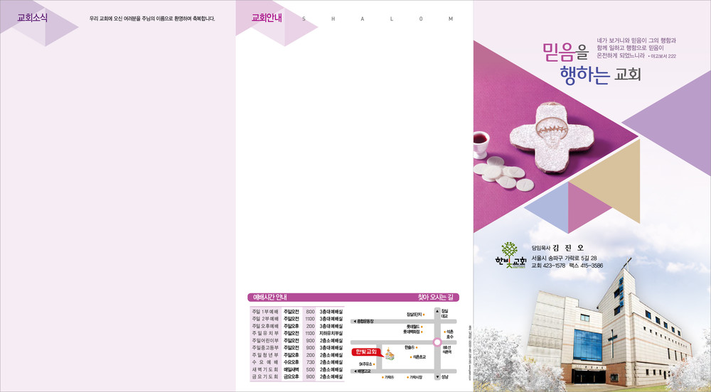 모든 디자인이 완료된 후 현재 교회가 사용중인 한글파일을 보내주시면, 새로운 주보에 맞추어 인쇄가 가능하도록 한글파일을 제작해드리고 있습니다. (한글작업 요청시 약 1-3일 정도의 시간이 소요되오니 참고해 주시기 바랍니다.)
