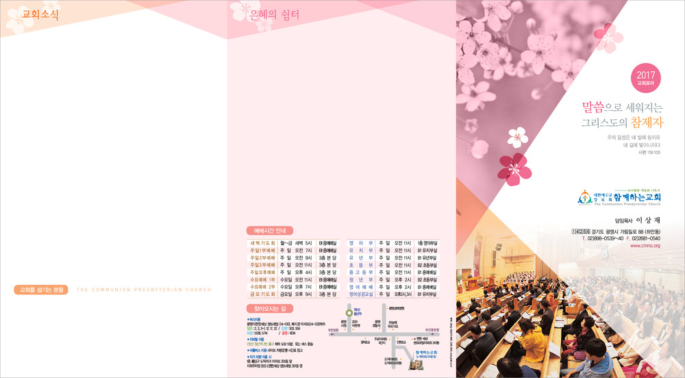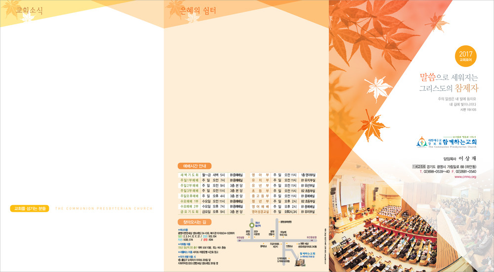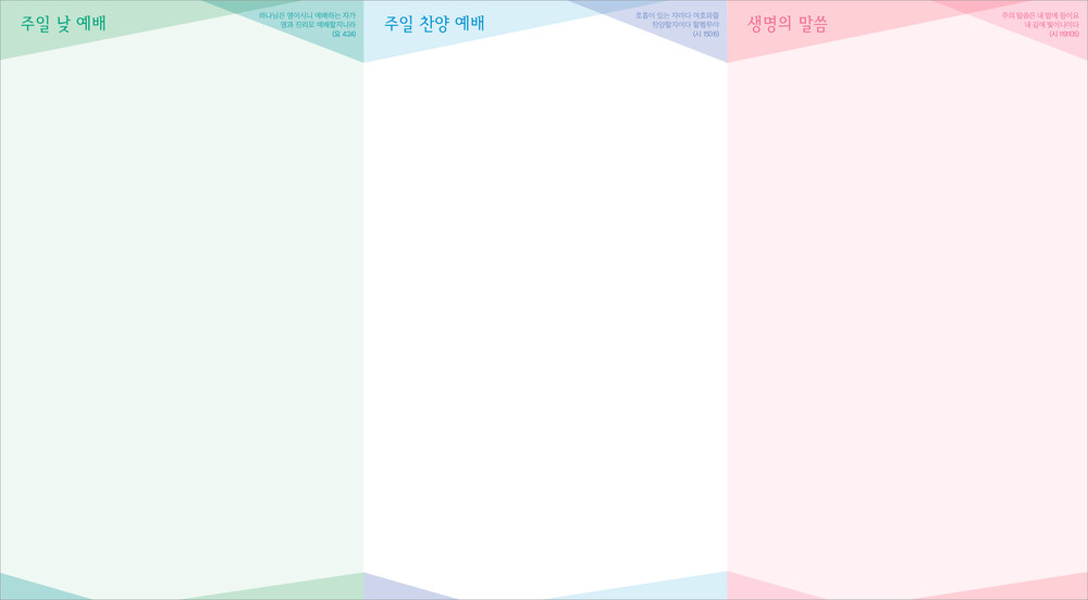 모든 디자인이 완료된 후 현재 교회가 사용중인 한글파일을 보내주시면, 새로운 주보에 맞추어 인쇄가 가능하도록 한글파일을 제작해드리고 있습니다. (한글작업 요청시 약 1-3일 정도의 시간이 소요되오니 참고해 주시기 바랍니다.)