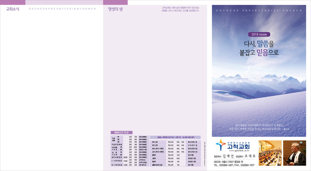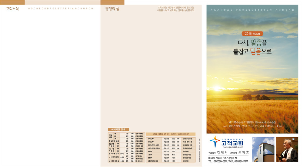 모든 디자인이 완료된 후 현재 교회가 사용중인 한글파일을 보내주시면, 새로운 주보에 맞추어 인쇄가 가능하도록 한글파일을 제작해드리고 있습니다. (한글작업 요청시 약 1-3일 정도의 시간이 소요되오니 참고해 주시기 바랍니다.)