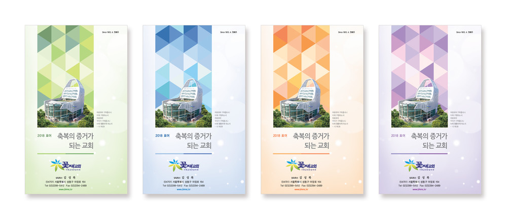 보통 교정을 컴퓨터 모니터나, 칼라 프린터로 출력해서 보시는 경우 모니터(빛의 색 RGB)와 인쇄물(잉크색 CMYK)에는 약간의 차이가 있습니다. 각 교회에서 사용되는 칼라 프린트도 옵셋 인쇄와는 인쇄 방식이 조금 달라 색상의 차이가 있습니다. 특히 종이의 재질(모조지, 아트지, 고급용지)에 의한 색의 차이도 발생할 수 있습니다.
