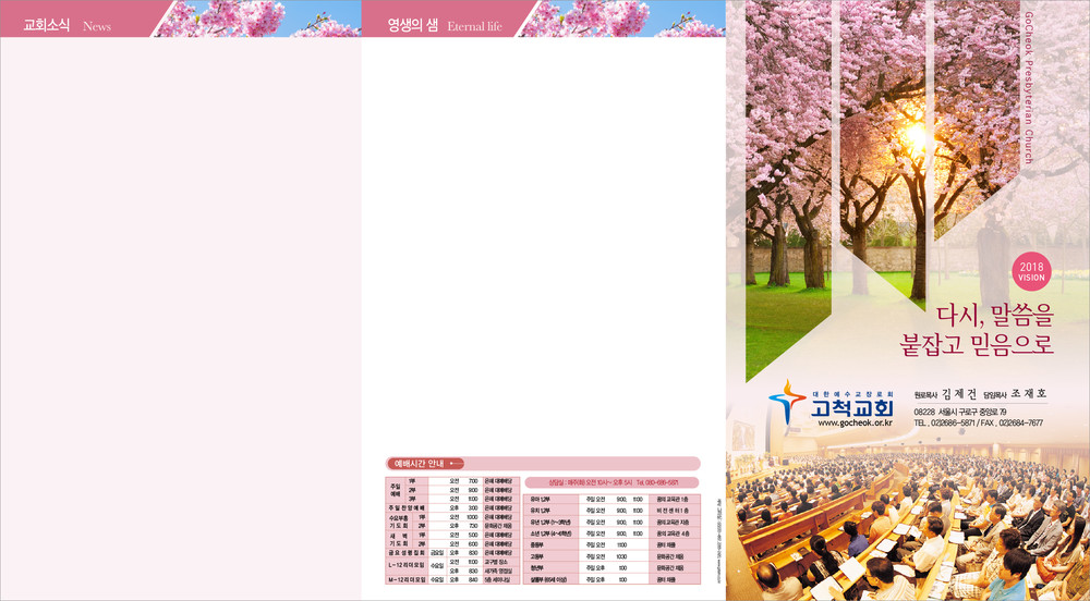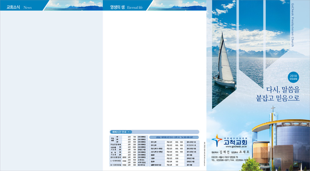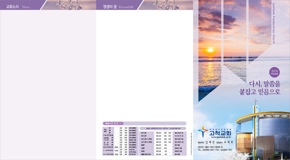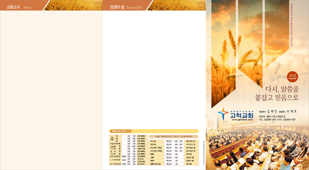 모든 디자인이 완료된 후 현재 교회가 사용중인 한글파일을 보내주시면, 새로운 주보에 맞추어 인쇄가 가능하도록 한글파일을 제작해드리고 있습니다. (한글작업 요청시 약 1-3일 정도의 시간이 소요되오니 참고해 주시기 바랍니다.)