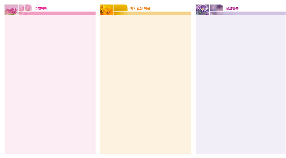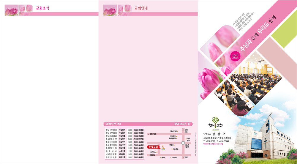 모든 디자인이 완료된 후 현재 교회가 사용중인 한글파일을 보내주시면, 새로운 주보에 맞추어 인쇄가 가능하도록 한글파일을 제작해드리고 있습니다. (한글작업 요청시 약 1-3일 정도의 시간이 소요되오니 참고해 주시기 바랍니다.)