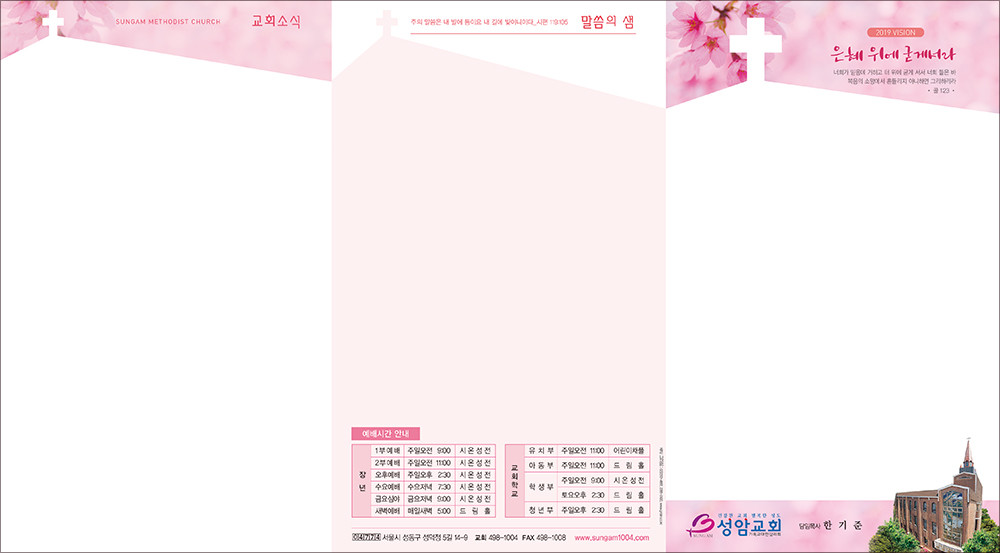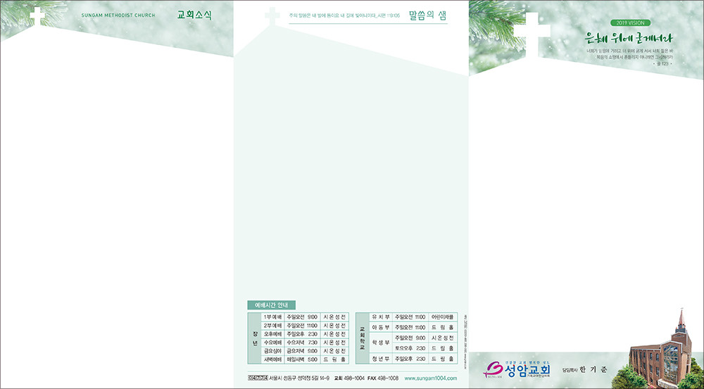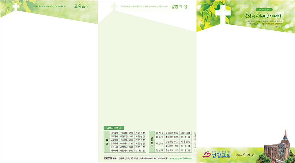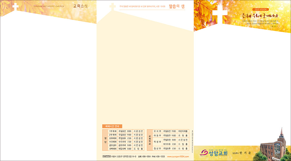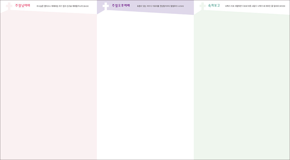 모든 디자인이 완료된 후 현재 교회가 사용중인 한글파일을 보내주시면, 새로운 주보에 맞추어 인쇄가 가능하도록 한글파일을 제작해드리고 있습니다. (한글작업 요청시 약 1-3일 정도의 시간이 소요되오니 참고해 주시기 바랍니다.)