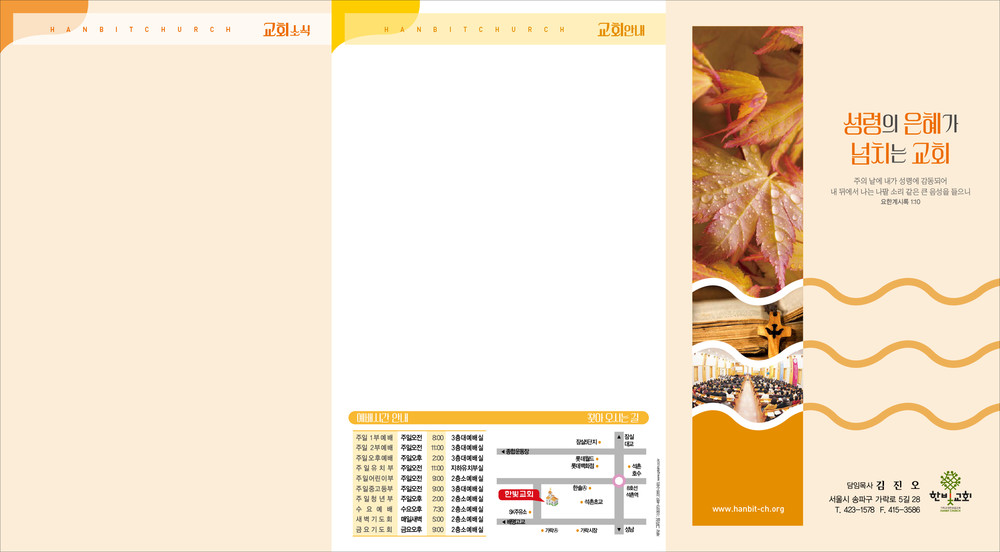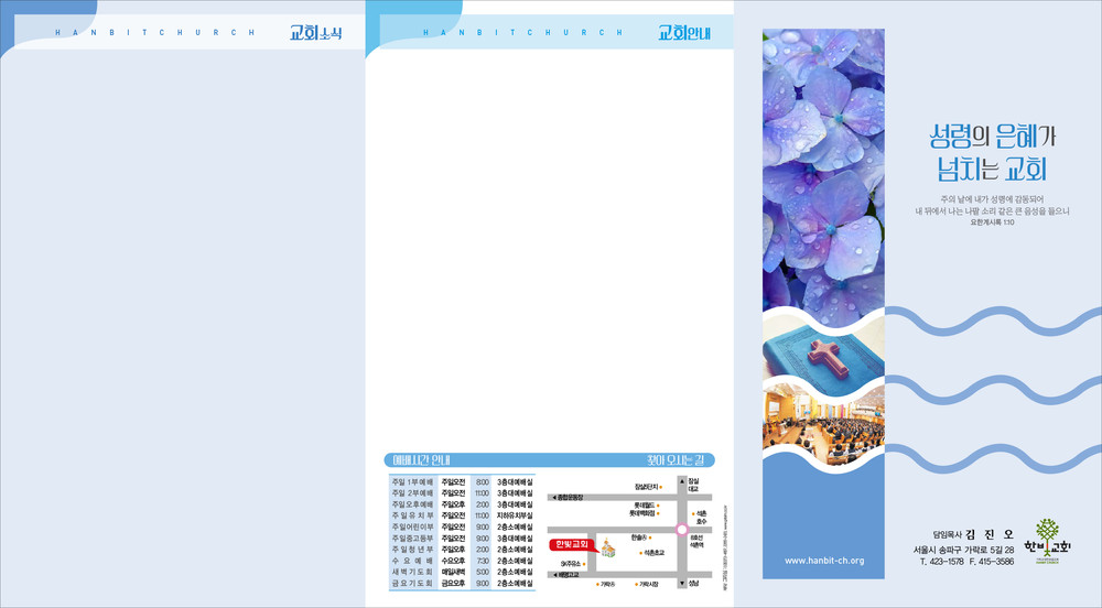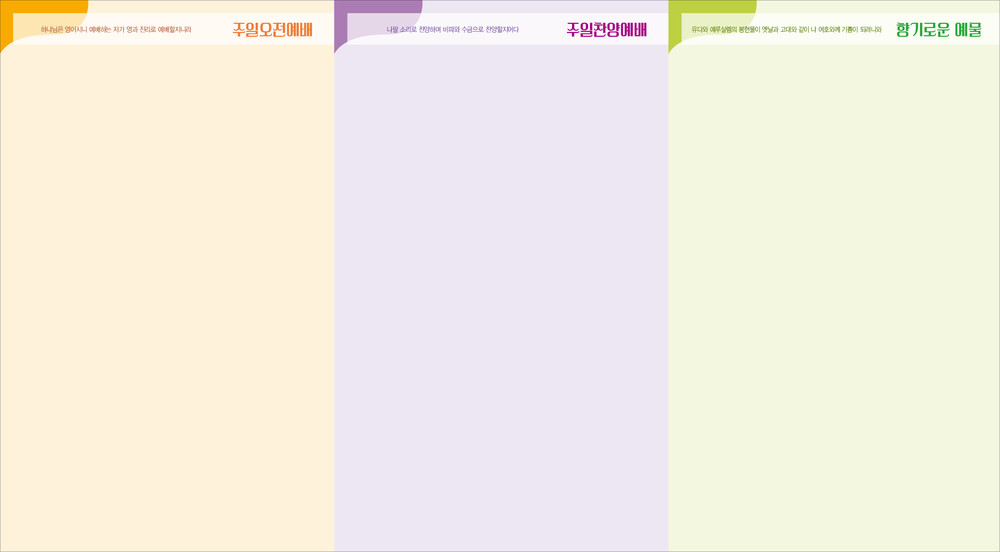 모든 디자인이 완료된 후 현재 교회가 사용중인 한글파일을 보내주시면, 새로운 주보에 맞추어 인쇄가 가능하도록 한글파일을 제작해드리고 있습니다. (한글작업 요청시 약 1-3일 정도의 시간이 소요되오니 참고해 주시기 바랍니다.)