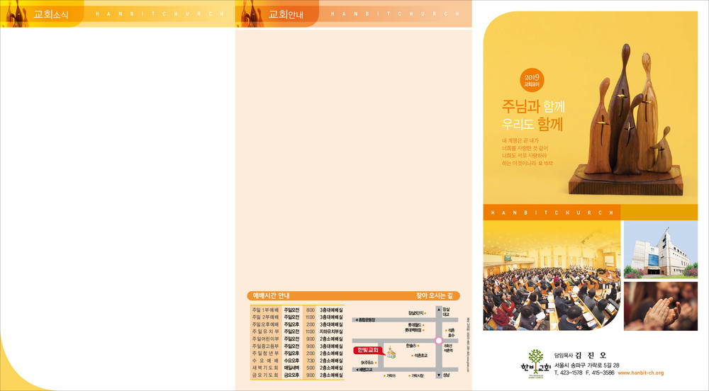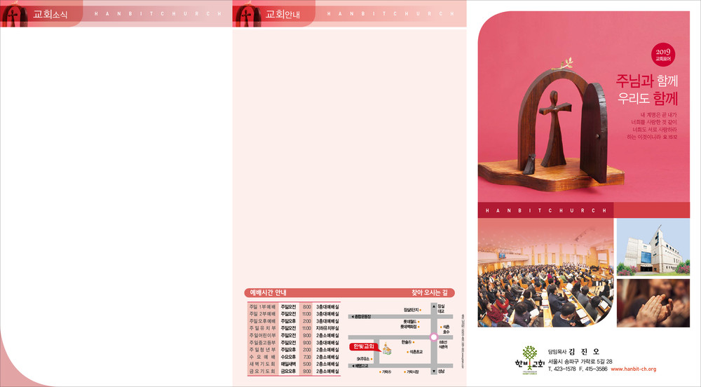 모든 디자인이 완료된 후 현재 교회가 사용중인 한글파일을 보내주시면, 새로운 주보에 맞추어 인쇄가 가능하도록 한글파일을 제작해드리고 있습니다. (한글작업 요청시 약 1-3일 정도의 시간이 소요되오니 참고해 주시기 바랍니다.)