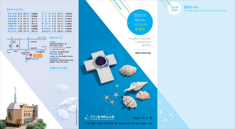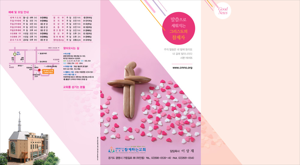 모든 디자인이 완료된 후 현재 교회가 사용중인 한글파일을 보내주시면, 새로운 주보에 맞추어 인쇄가 가능하도록 한글파일을 제작해드리고 있습니다. (한글작업 요청시 약 1-3일 정도의 시간이 소요되오니 참고해 주시기 바랍니다.)