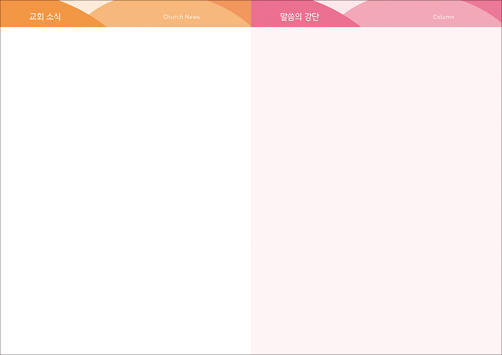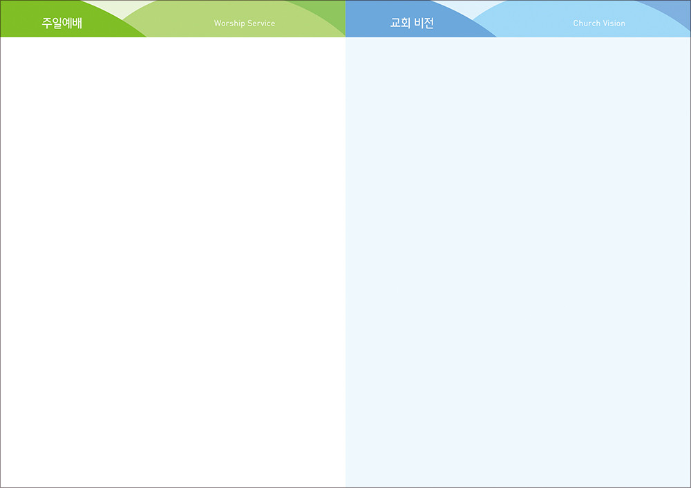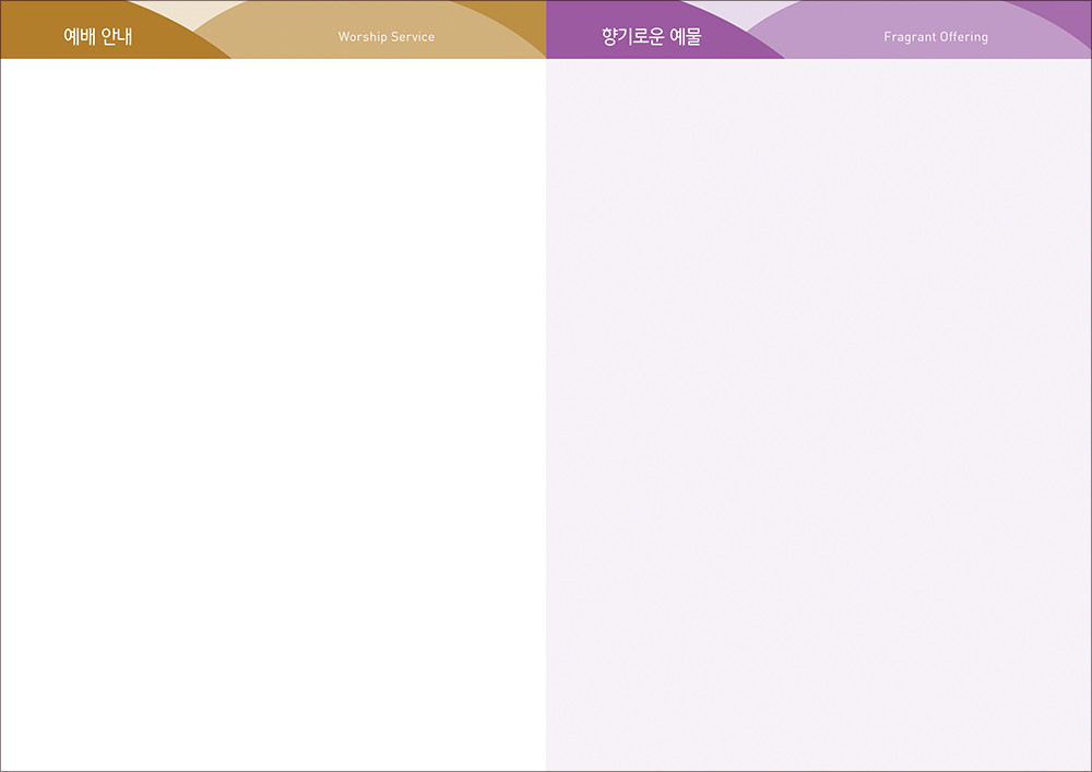 모든 디자인이 완료된 후 현재 교회가 사용중인 한글파일을 보내주시면, 새로운 주보에 맞추어 인쇄가 가능하도록 한글파일을 제작해드리고 있습니다. (한글작업 요청시 약 1-3일 정도의 시간이 소요되오니 참고해 주시기 바랍니다.)