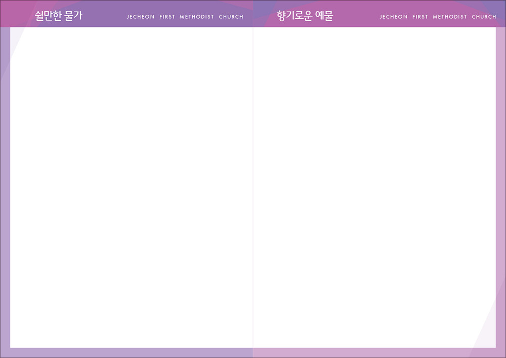 모든 디자인이 완료된 후 현재 교회가 사용중인 한글파일을 보내주시면, 새로운 주보에 맞추어 인쇄가 가능하도록 한글파일을 제작해드리고 있습니다. (한글작업 요청시 약 1-3일 정도의 시간이 소요되오니 참고해 주시기 바랍니다.)