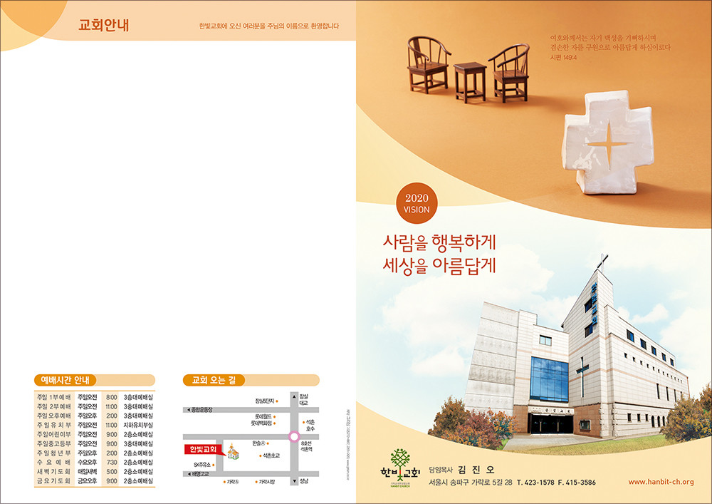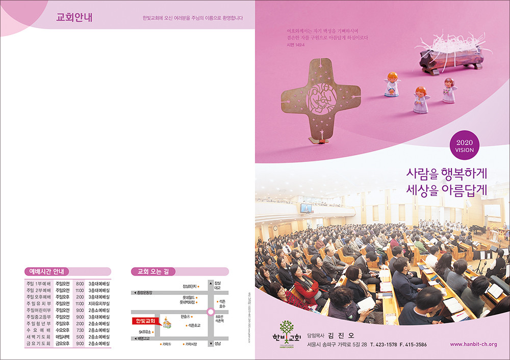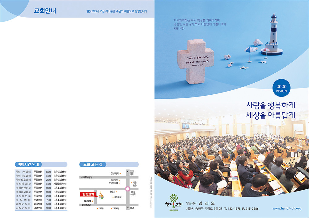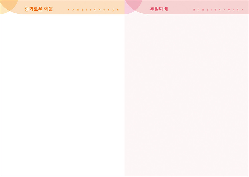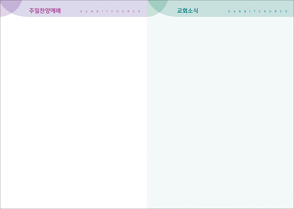 모든 디자인이 완료된 후 현재 교회가 사용중인 한글파일을 보내주시면, 새로운 주보에 맞추어 인쇄가 가능하도록 한글파일을 제작해드리고 있습니다. (한글작업 요청시 약 1-3일 정도의 시간이 소요되오니 참고해 주시기 바랍니다.)