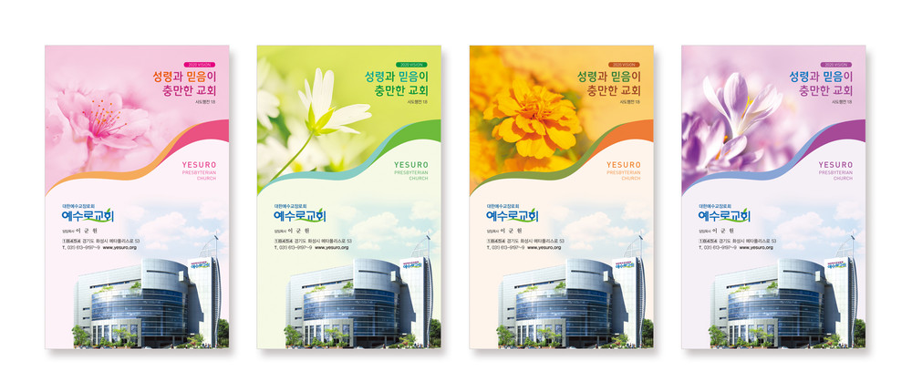 보통 교정을 컴퓨터 모니터나, 칼라 프린터로 출력해서 보시는 경우 모니터(빛의 색 RGB)와 인쇄물(잉크색 CMYK)에는 약간의 차이가 있습니다. 각 교회에서 사용되는 칼라 프린트도 옵셋 인쇄와는 인쇄 방식이 조금 달라 색상의 차이가 있습니다. 특히 종이의 재질(모조지, 아트지, 고급용지)에 의한 색의 차이도 발생할 수 있습니다.