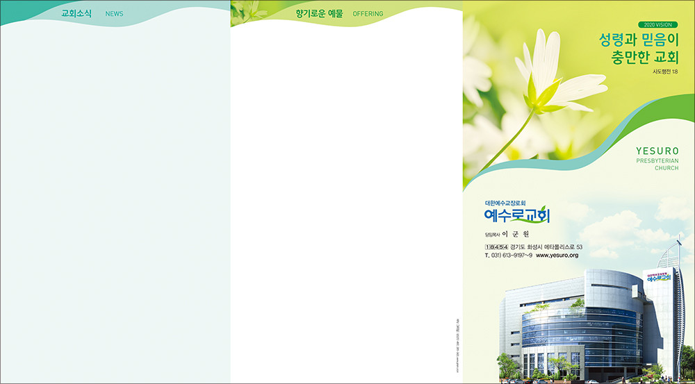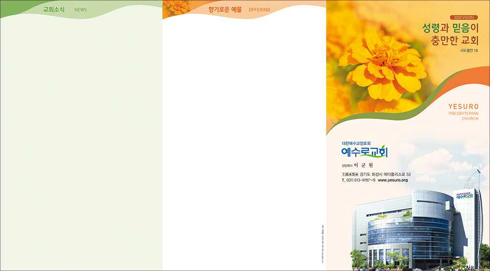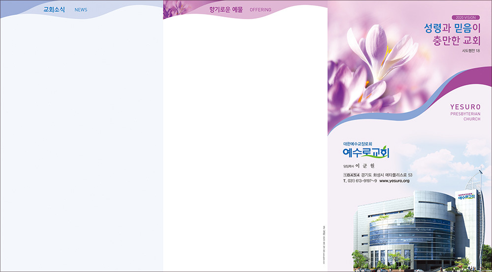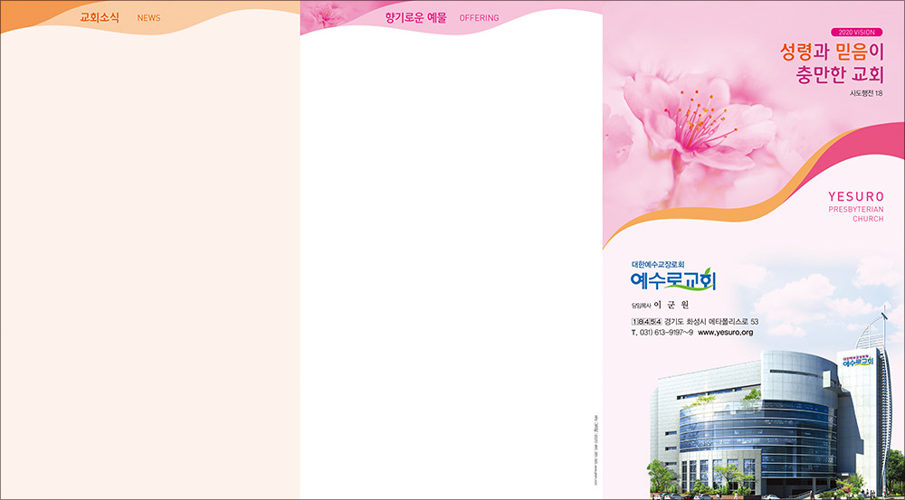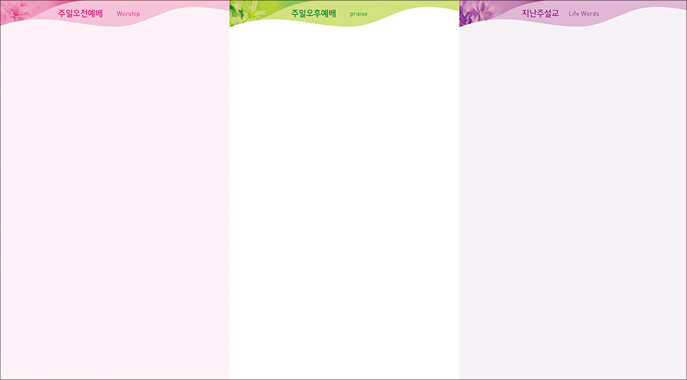 모든 디자인이 완료된 후 현재 교회가 사용중인 한글파일을 보내주시면, 새로운 주보에 맞추어 인쇄가 가능하도록 한글파일을 제작해드리고 있습니다. (한글작업 요청시 약 1-3일 정도의 시간이 소요되오니 참고해 주시기 바랍니다.)