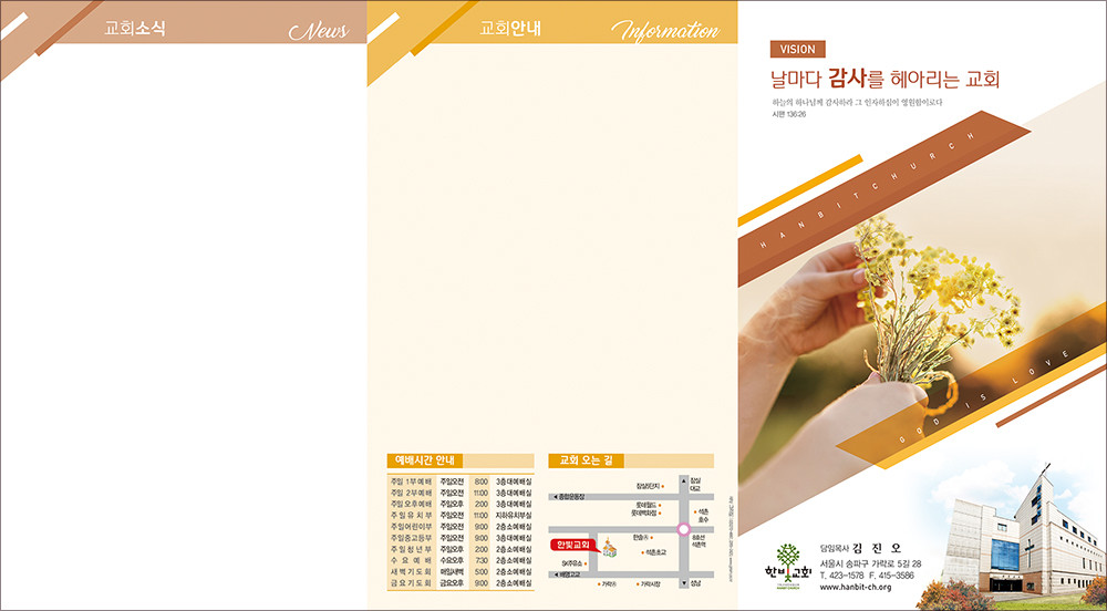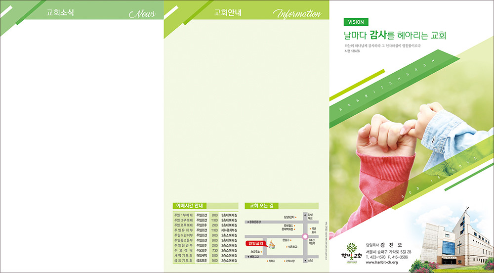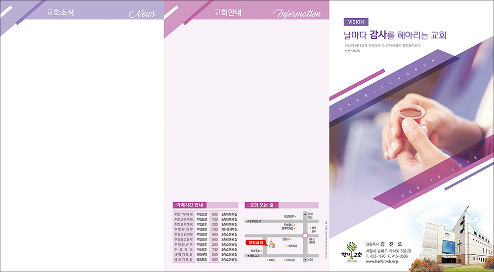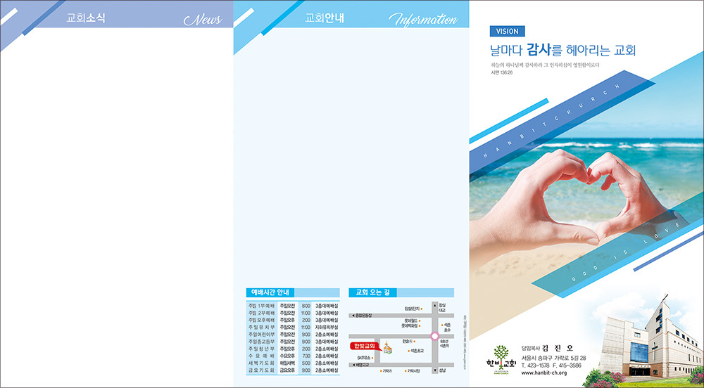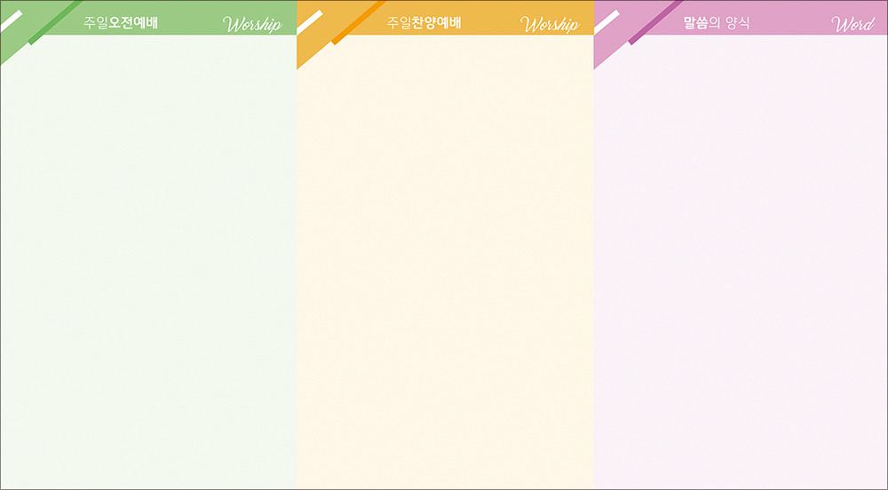 모든 디자인이 완료된 후 현재 교회가 사용중인 한글파일을 보내주시면, 새로운 주보에 맞추어 인쇄가 가능하도록 한글파일을 제작해드리고 있습니다. (한글작업 요청시 약 1-3일 정도의 시간이 소요되오니 참고해 주시기 바랍니다.)