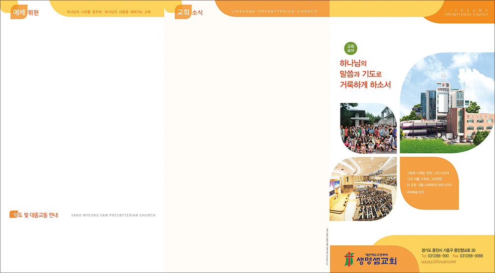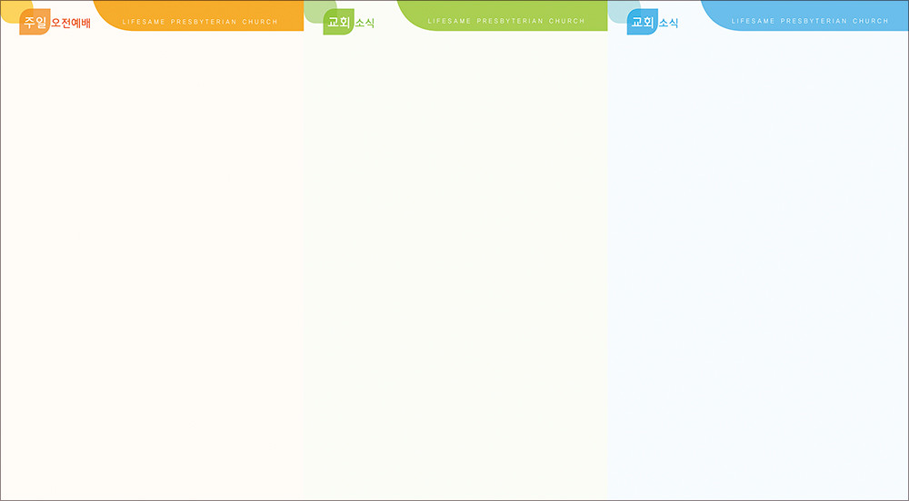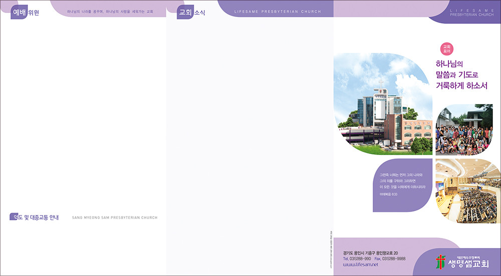 모든 디자인이 완료된 후 현재 교회가 사용중인 한글파일을 보내주시면, 새로운 주보에 맞추어 인쇄가 가능하도록 한글파일을 제작해드리고 있습니다. (한글작업 요청시 약 1-3일 정도의 시간이 소요되오니 참고해 주시기 바랍니다.)