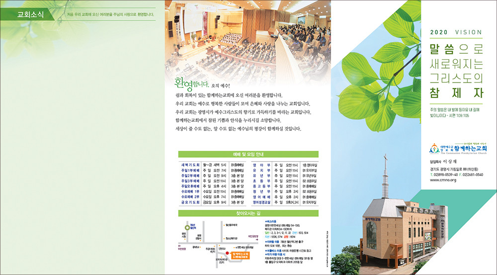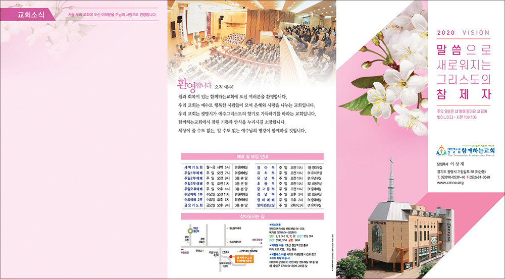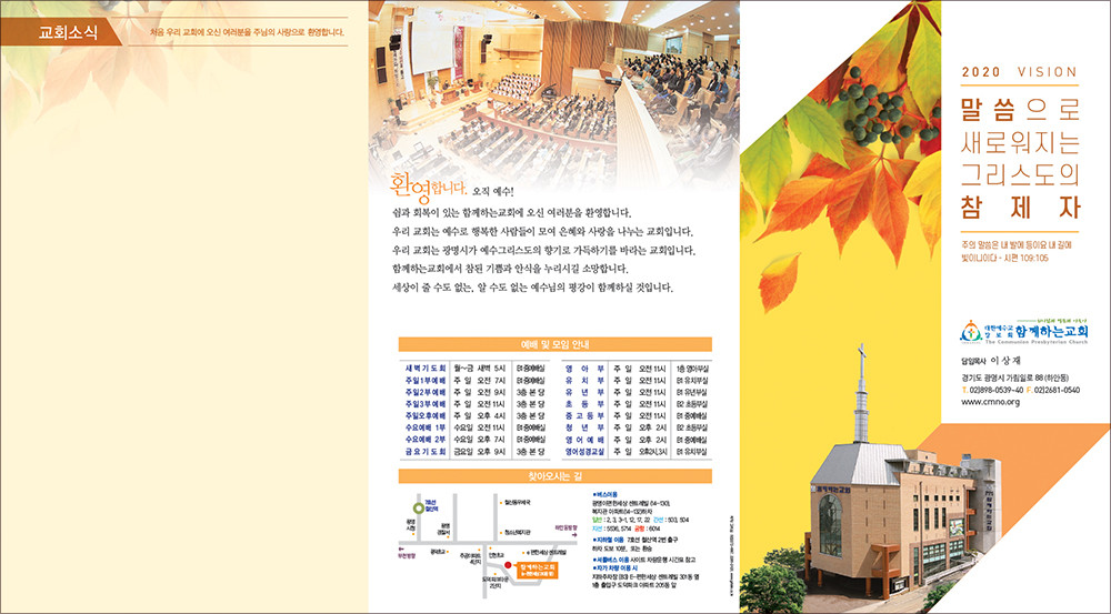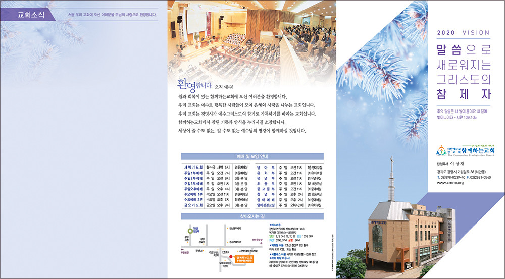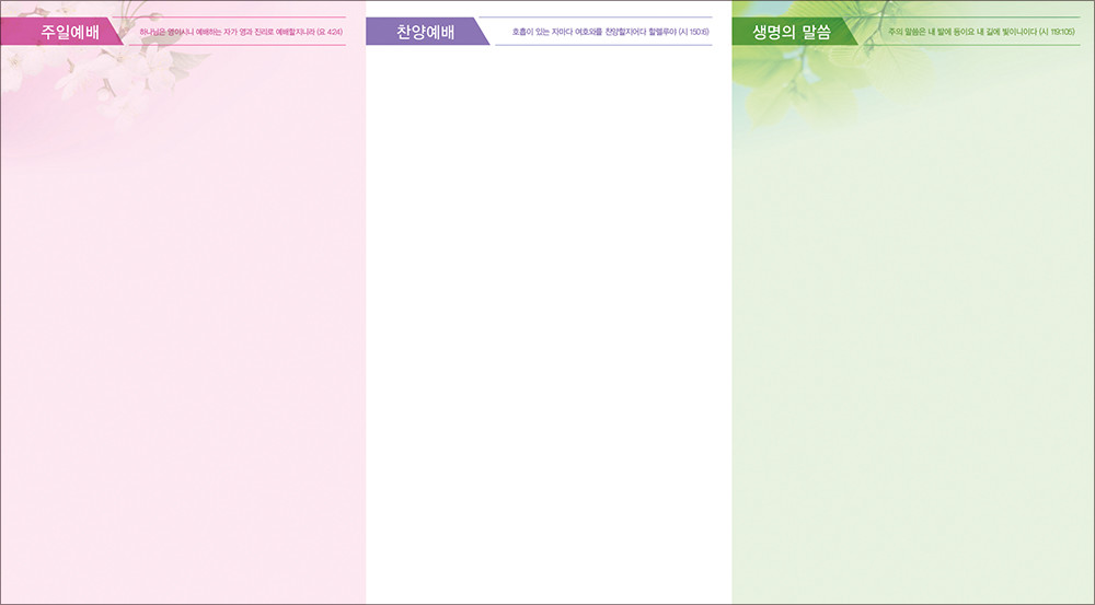 모든 디자인이 완료된 후 현재 교회가 사용중인 한글파일을 보내주시면, 새로운 주보에 맞추어 인쇄가 가능하도록 한글파일을 제작해드리고 있습니다. (한글작업 요청시 약 1-3일 정도의 시간이 소요되오니 참고해 주시기 바랍니다.)
