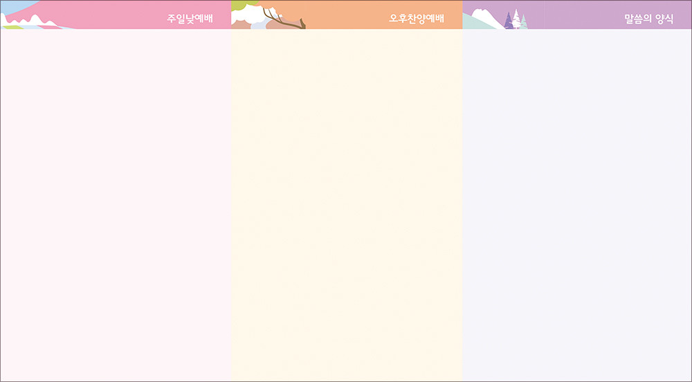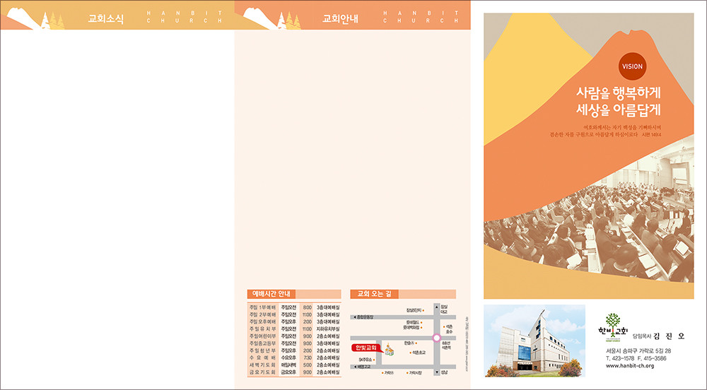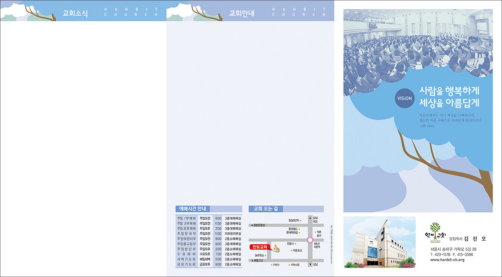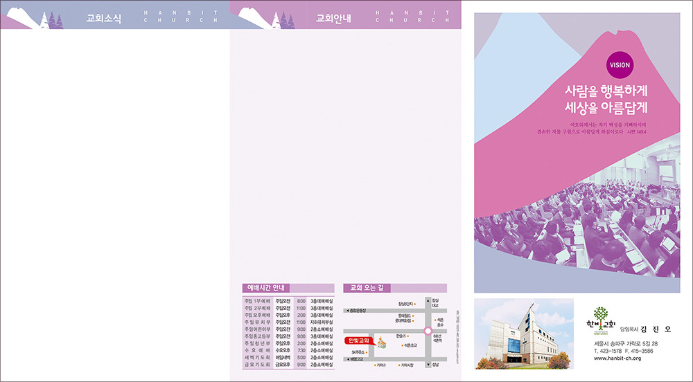 모든 디자인이 완료된 후 현재 교회가 사용중인 한글파일을 보내주시면, 새로운 주보에 맞추어 인쇄가 가능하도록 한글파일을 제작해드리고 있습니다. (한글작업 요청시 약 1-3일 정도의 시간이 소요되오니 참고해 주시기 바랍니다.)