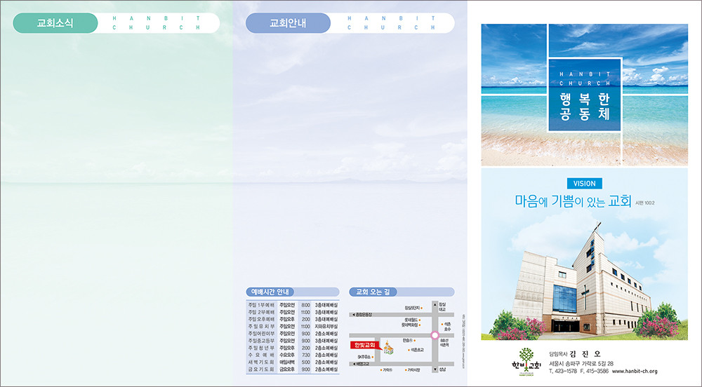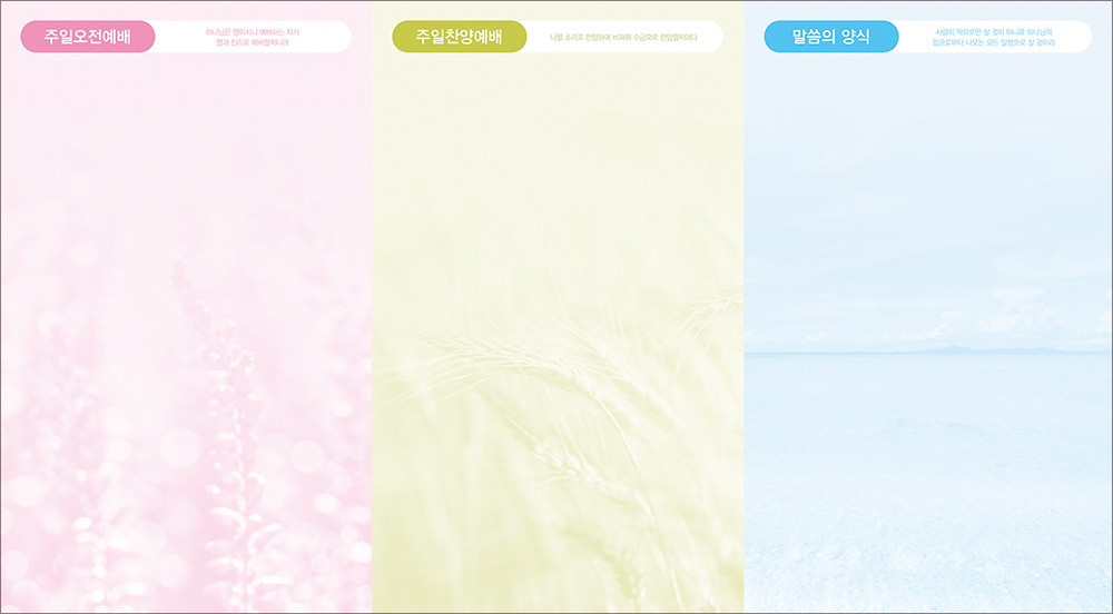 모든 디자인이 완료된 후 현재 교회가 사용중인 한글파일을 보내주시면, 새로운 주보에 맞추어 인쇄가 가능하도록 한글파일을 제작해드리고 있습니다. (한글작업 요청시 약 1-3일 정도의 시간이 소요되오니 참고해 주시기 바랍니다.)