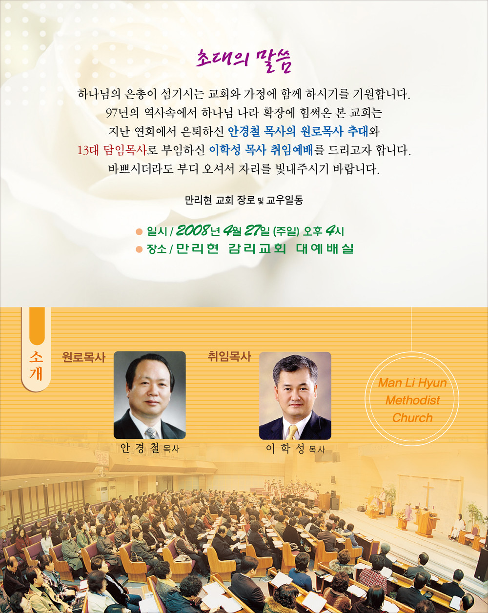 만리현교회 목사취임 초청장