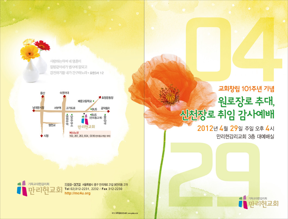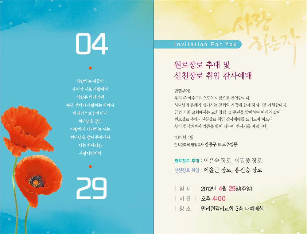 만리현교회 임직예배 초청장