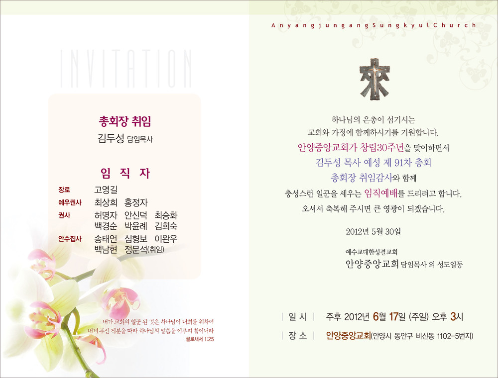 안양중앙교회 총회장취임 초청장