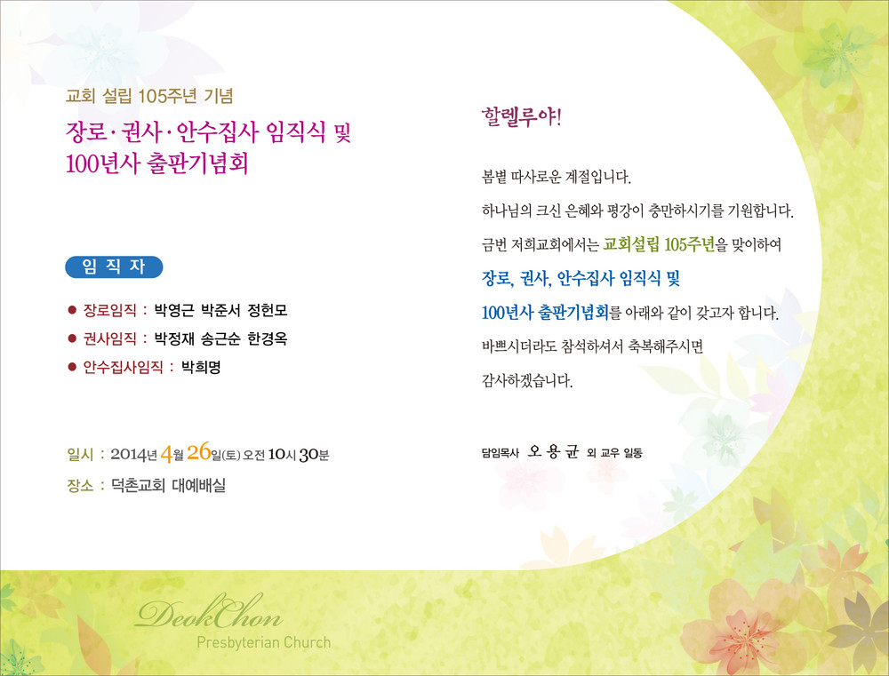 저희 그리심에서 디자인에 더 많은 신경을 쓰다보면 오·탈자를 미처 확인 못할 때가 있습니다. 특히 내용을 전화로 불러주시거나 부득이하게 텍스트를 저희가 타이핑했을 경우 더욱 철저하게 교정을 봐주셔야 합니다.