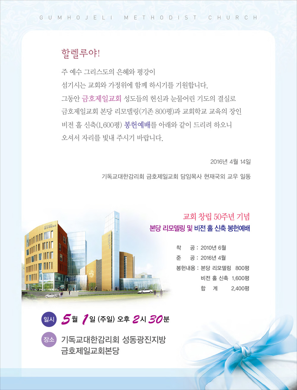 금호제일교회 리모델링 초청장