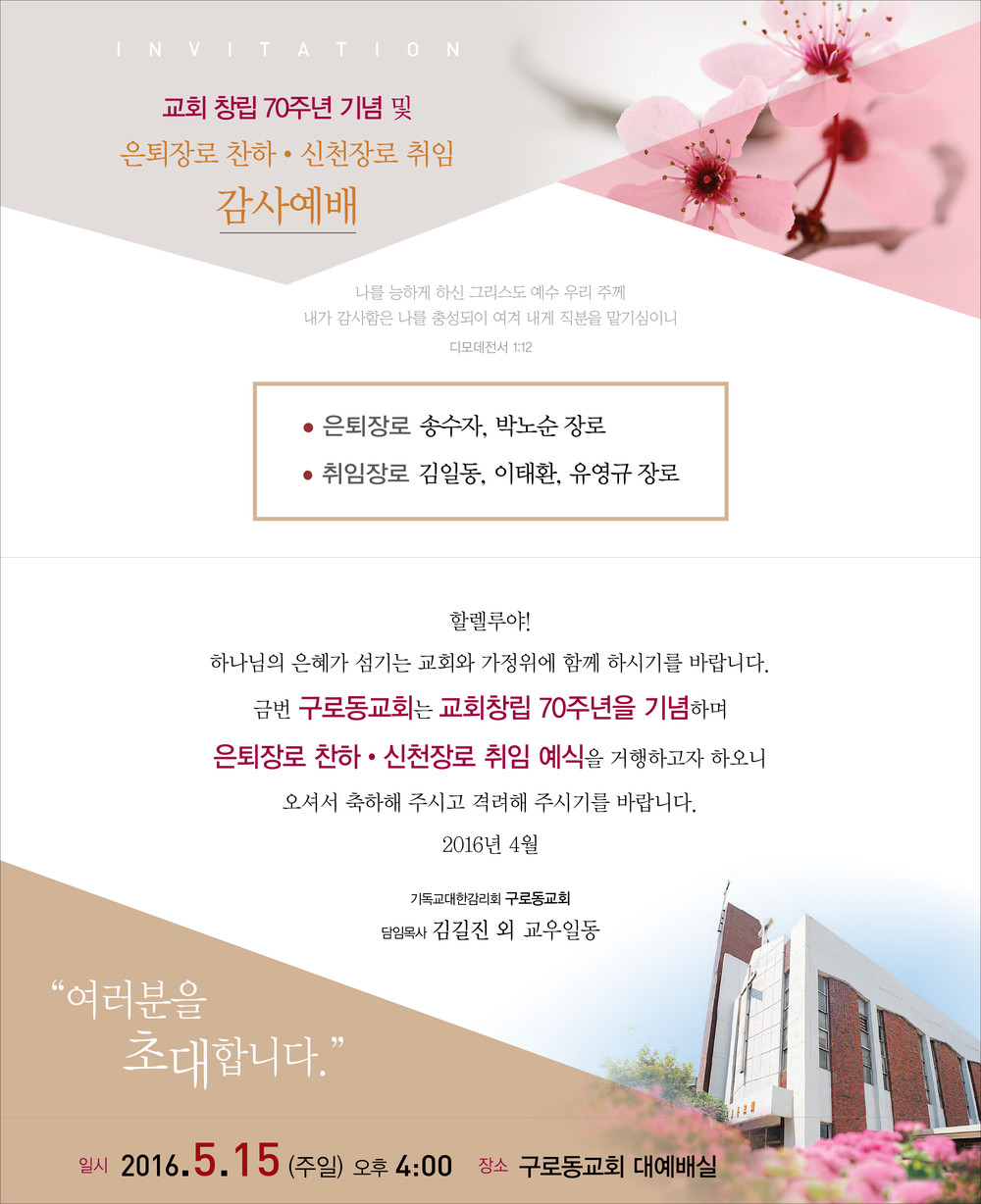 구로동교회 임직예배 초청장