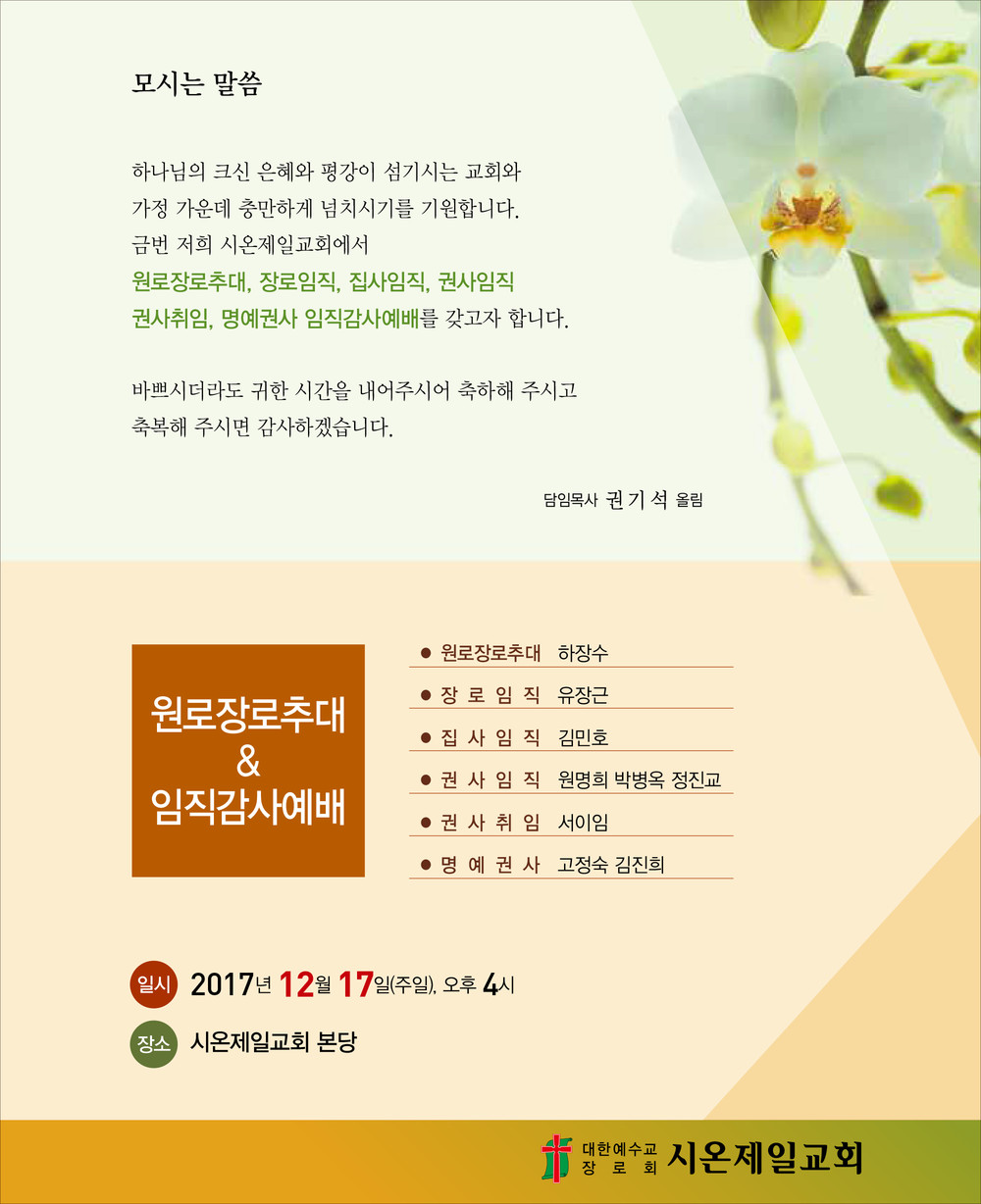 시온제일교회 임직예배 순서지
