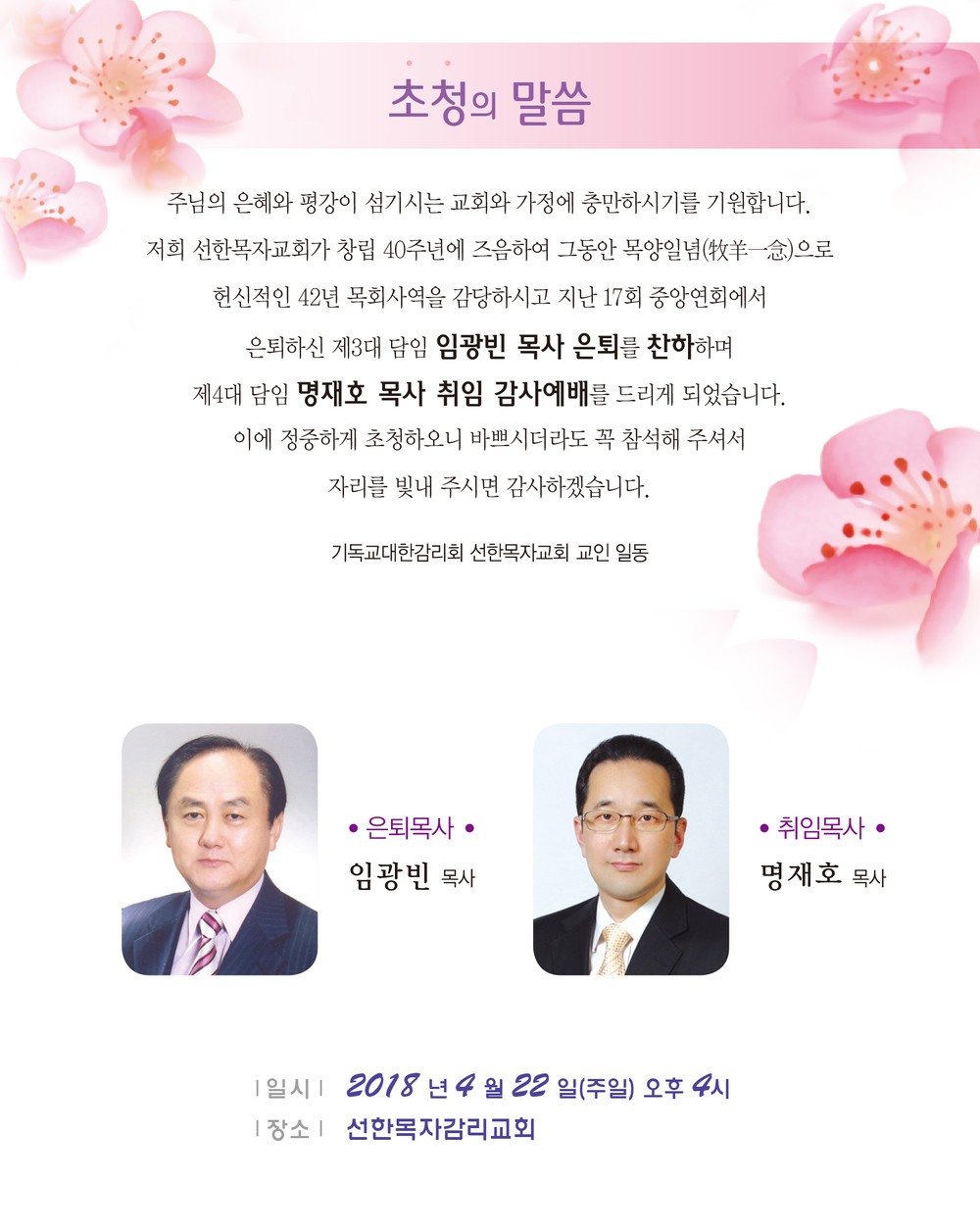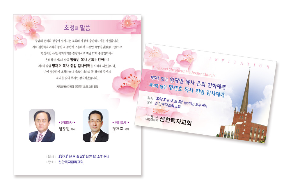 선한목자교회 은퇴/취임감사예배 초청장 인기글