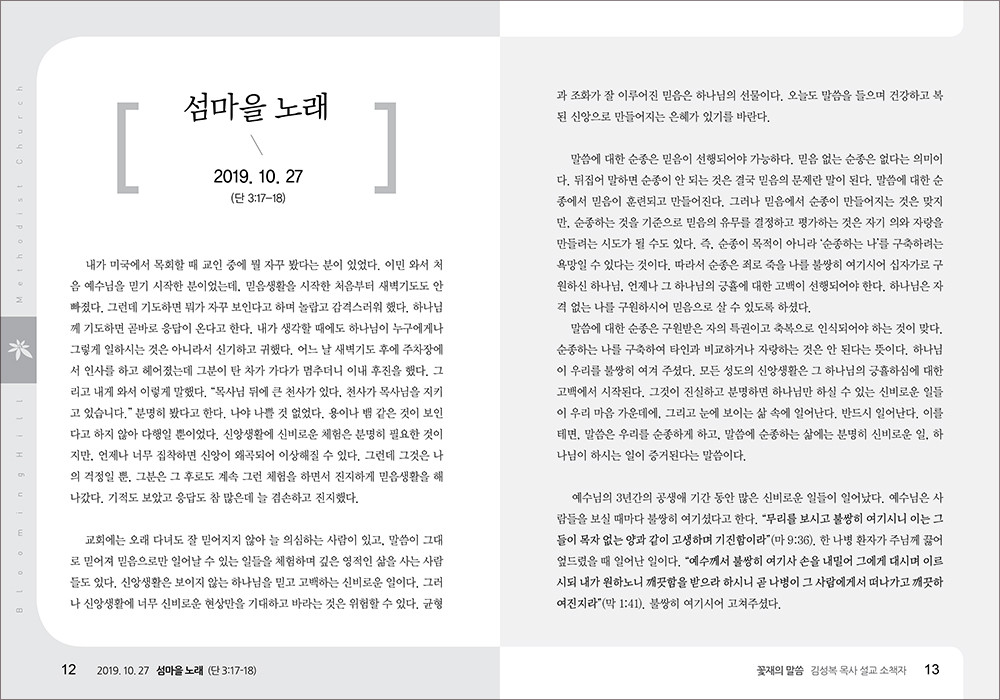 보통 교정을 컴퓨터 모니터나, 칼라 프린터로 출력해서 보시는 경우 모니터(빛의 색 RGB)와 인쇄물(잉크색 CMYK)에는 약간의 차이가 있습니다. 각 교회에서 사용되는 칼라 프린트도 옵셋 인쇄와는 인쇄 방식이 조금 달라 색상의 차이가 있습니다. 특히 종이의 재질(모조지, 아트지, 고급용지)에 의한 색의 차이도 발생할 수 있습니다.