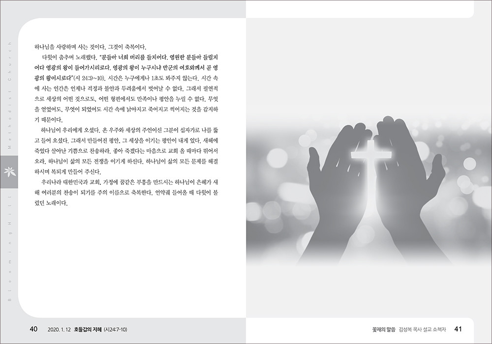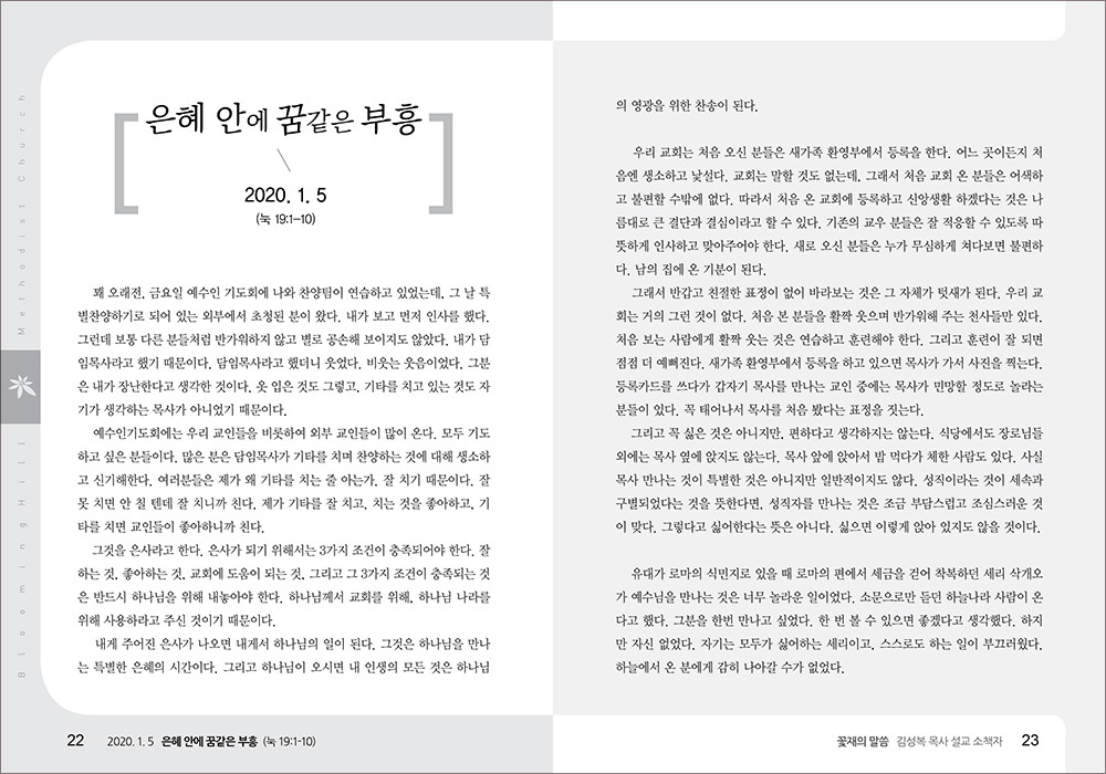 교회는 아주 다양한 행사와 교육이 이루어집니다. 추추감사절과 사순절에 이루어지는 새벽집회 묵상집, 새신자들을 위한 새신자 교재, 은혜에 감사하여 간증한 내용의 간증전도집 등 작고 간결한 디자인의 책자입니다.