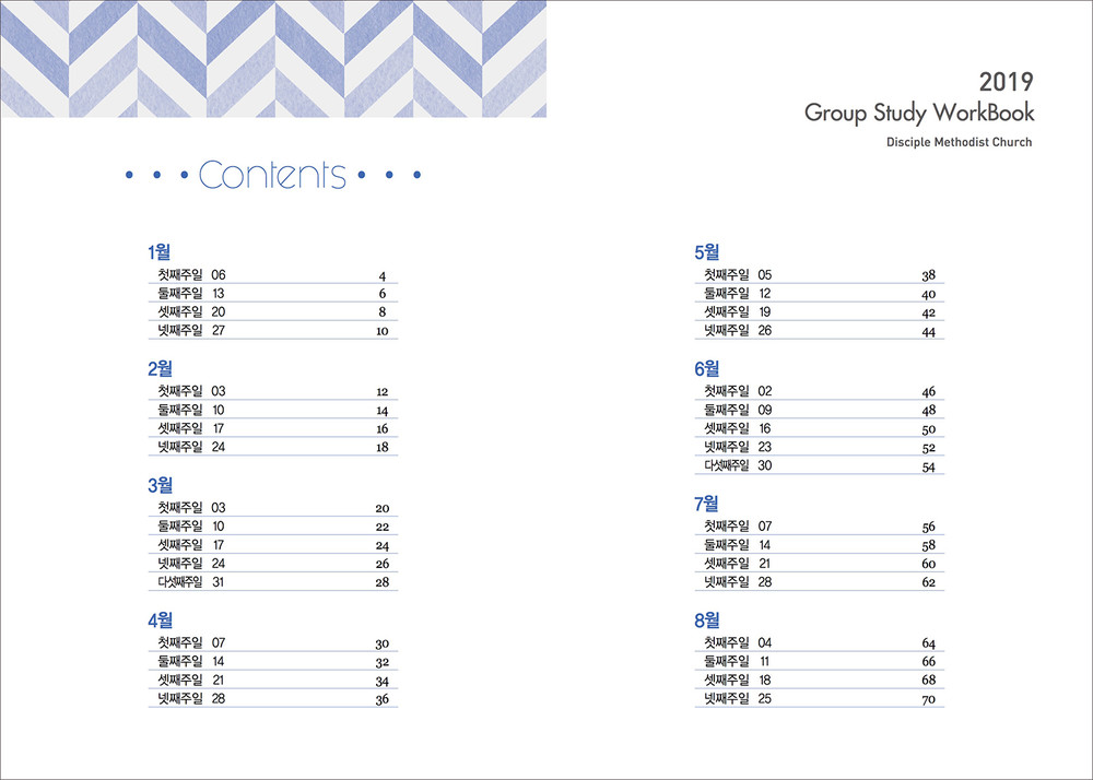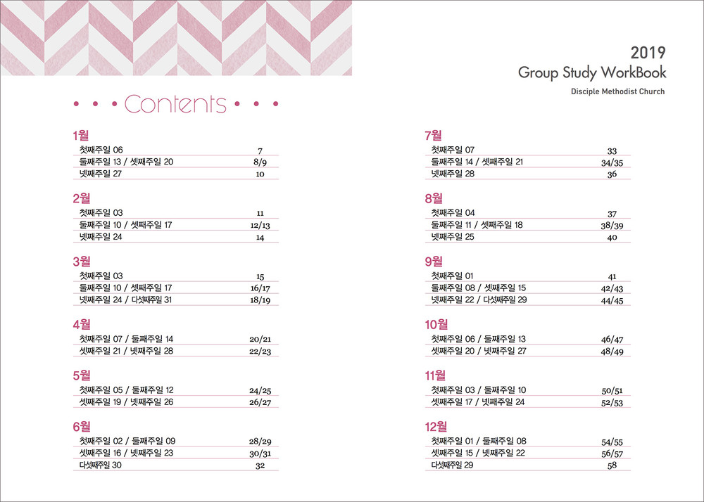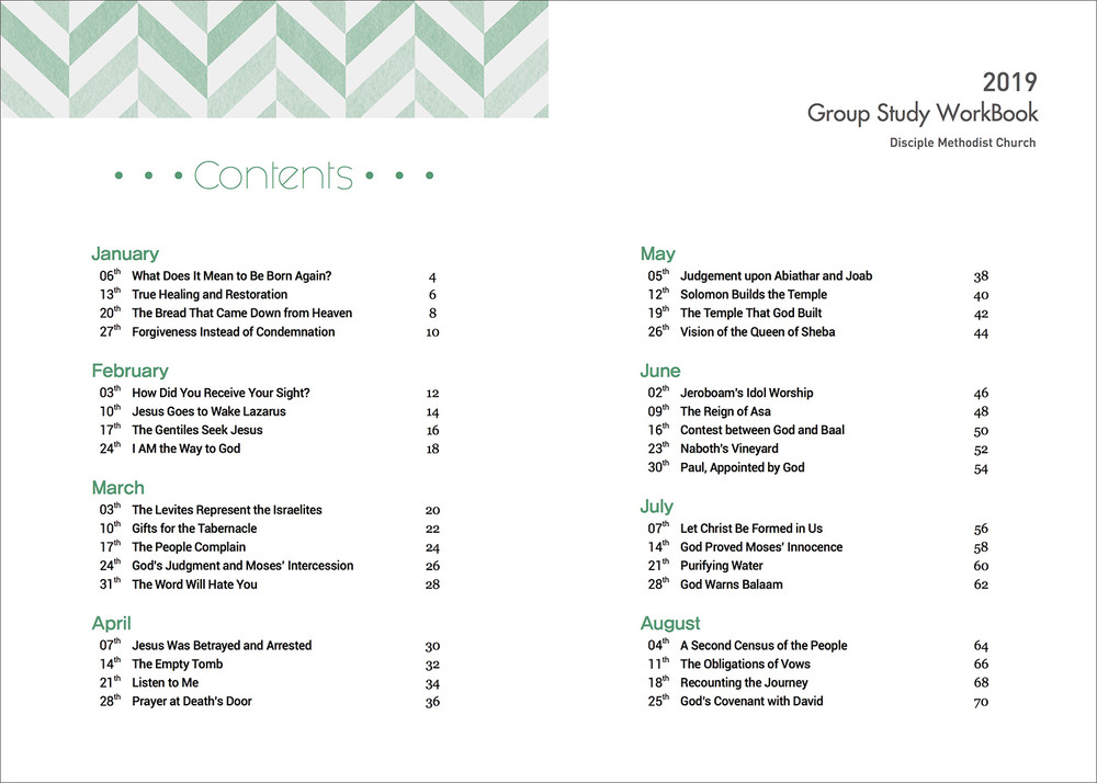 교회는 아주 다양한 행사와 교육이 이루어집니다. 추추감사절과 사순절에 이루어지는 새벽집회 묵상집, 새신자들을 위한 새신자 교재, 은혜에 감사하여 간증한 내용의 간증전도집 등 작고 간결한 디자인의 책자입니다.