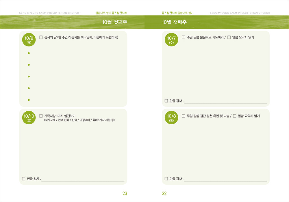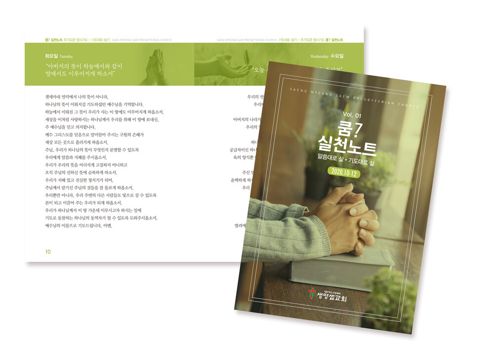 보통 교정을 컴퓨터 모니터나, 칼라 프린터로 출력해서 보시는 경우 모니터(빛의 색 RGB)와 인쇄물(잉크색 CMYK)에는 약간의 차이가 있습니다. 각 교회에서 사용되는 칼라 프린트도 옵셋 인쇄와는 인쇄 방식이 조금 달라 색상의 차이가 있습니다. 특히 종이의 재질(모조지, 아트지, 고급용지)에 의한 색의 차이도 발생할 수 있습니다.