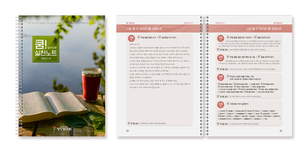보통 교정을 컴퓨터 모니터나, 칼라 프린터로 출력해서 보시는 경우 모니터(빛의 색 RGB)와 인쇄물(잉크색 CMYK)에는 약간의 차이가 있습니다. 각 교회에서 사용되는 칼라 프린트도 옵셋 인쇄와는 인쇄 방식이 조금 달라 색상의 차이가 있습니다. 특히 종이의 재질(모조지, 아트지, 고급용지)에 의한 색의 차이도 발생할 수 있습니다.