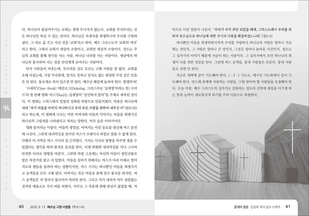 보통 교정을 컴퓨터 모니터나, 칼라 프린터로 출력해서 보시는 경우 모니터(빛의 색 RGB)와 인쇄물(잉크색 CMYK)에는 약간의 차이가 있습니다. 각 교회에서 사용되는 칼라 프린트도 옵셋 인쇄와는 인쇄 방식이 조금 달라 색상의 차이가 있습니다. 특히 종이의 재질(모조지, 아트지, 고급용지)에 의한 색의 차이도 발생할 수 있습니다.