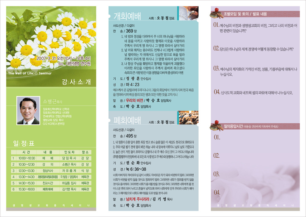 보통 교정을 컴퓨터 모니터나, 칼라 프린터로 출력해서 보시는 경우 모니터(빛의 색 RGB)와 인쇄물(잉크색 CMYK)에는 약간의 차이가 있습니다. 각 교회에서 사용되는 칼라 프린트도 옵셋 인쇄와는 인쇄 방식이 조금 달라 색상의 차이가 있습니다. 특히 종이의 재질(모조지, 아트지, 고급용지)에 의한 색의 차이도 발생할 수 있습니다.